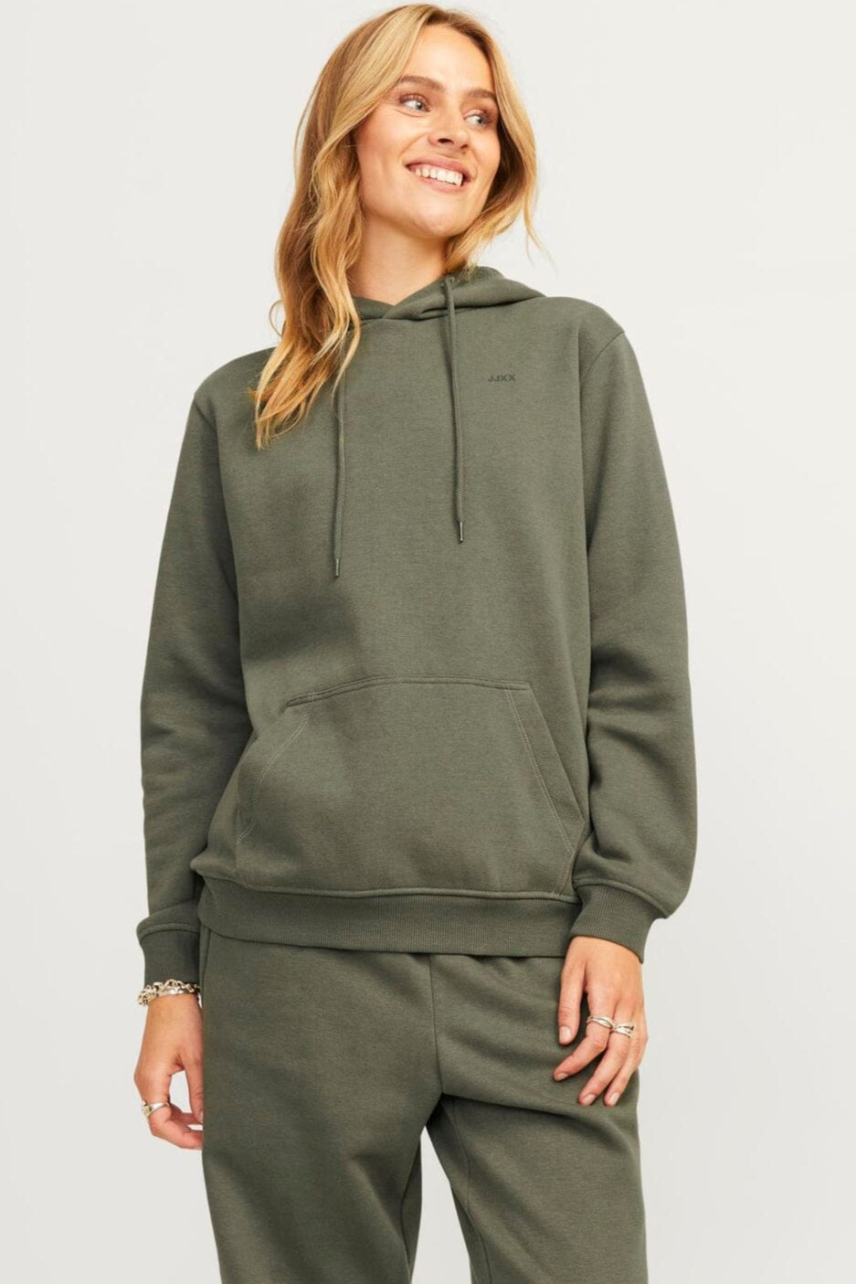 Groene hoodie van Jjxx met een losse pasvorm. Gemaakt van zachte katoen en gerecycled polyester met geborduurde details en een subtiel logo op de borst.