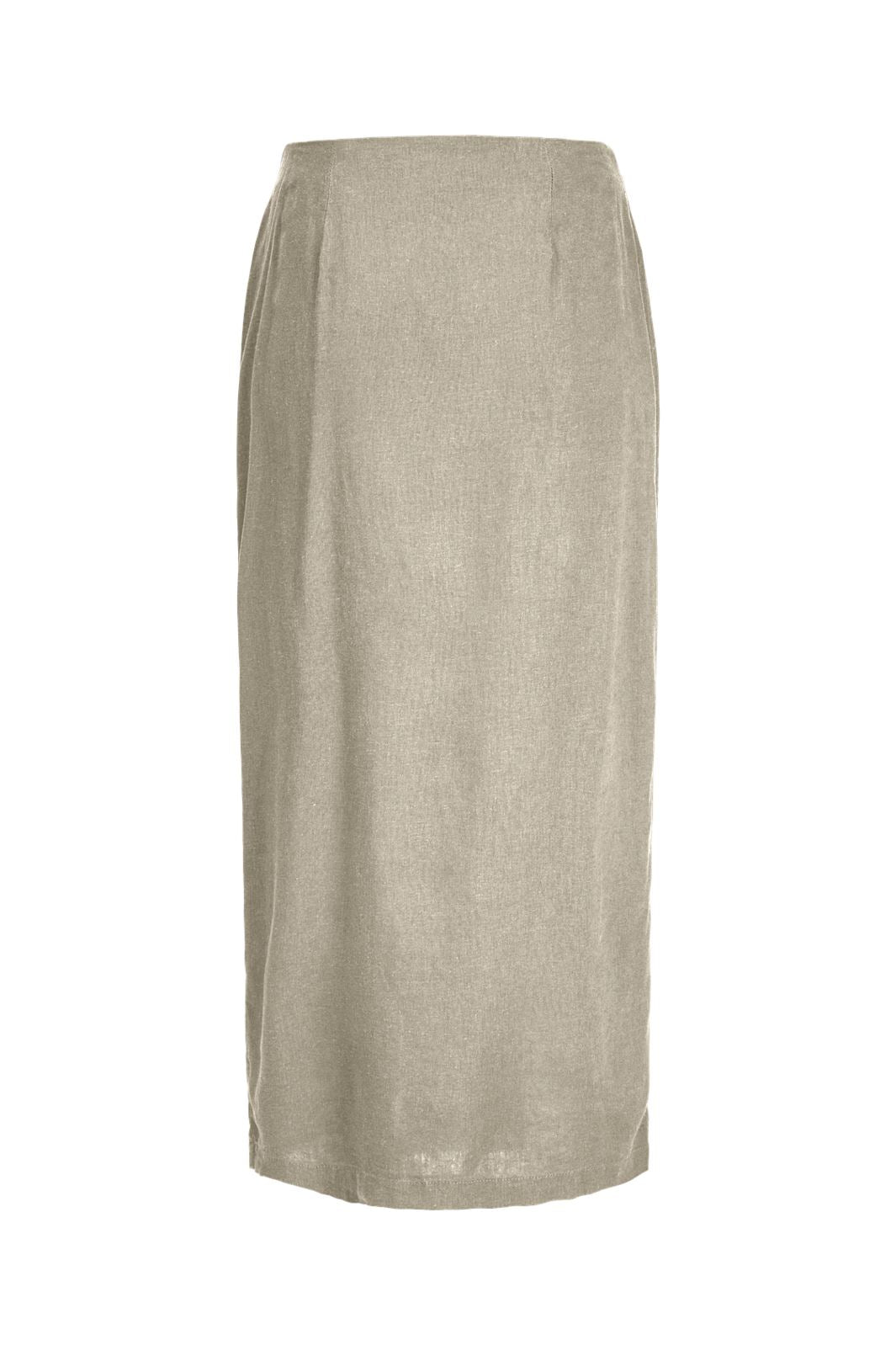 Wikkelrok van Jjxx in veergrijs. De lange rok heeft een wikkelontwerp met een strikband aan de zijkant en komt tot halverwege het scheenbeen.