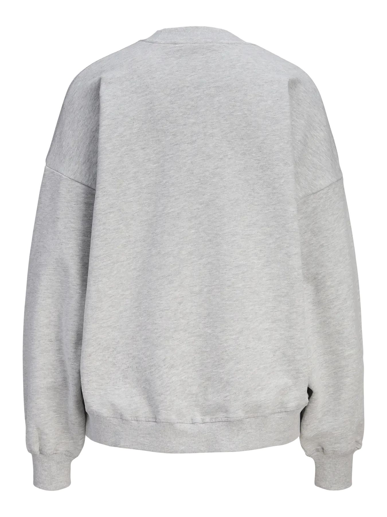 Een lichtgrijze sweatshirt van Jjxx met een oversized pasvorm. De sweatshirt heeft een geribde ronde halslijn en lange mouwen met verlaagde schoudernaden.