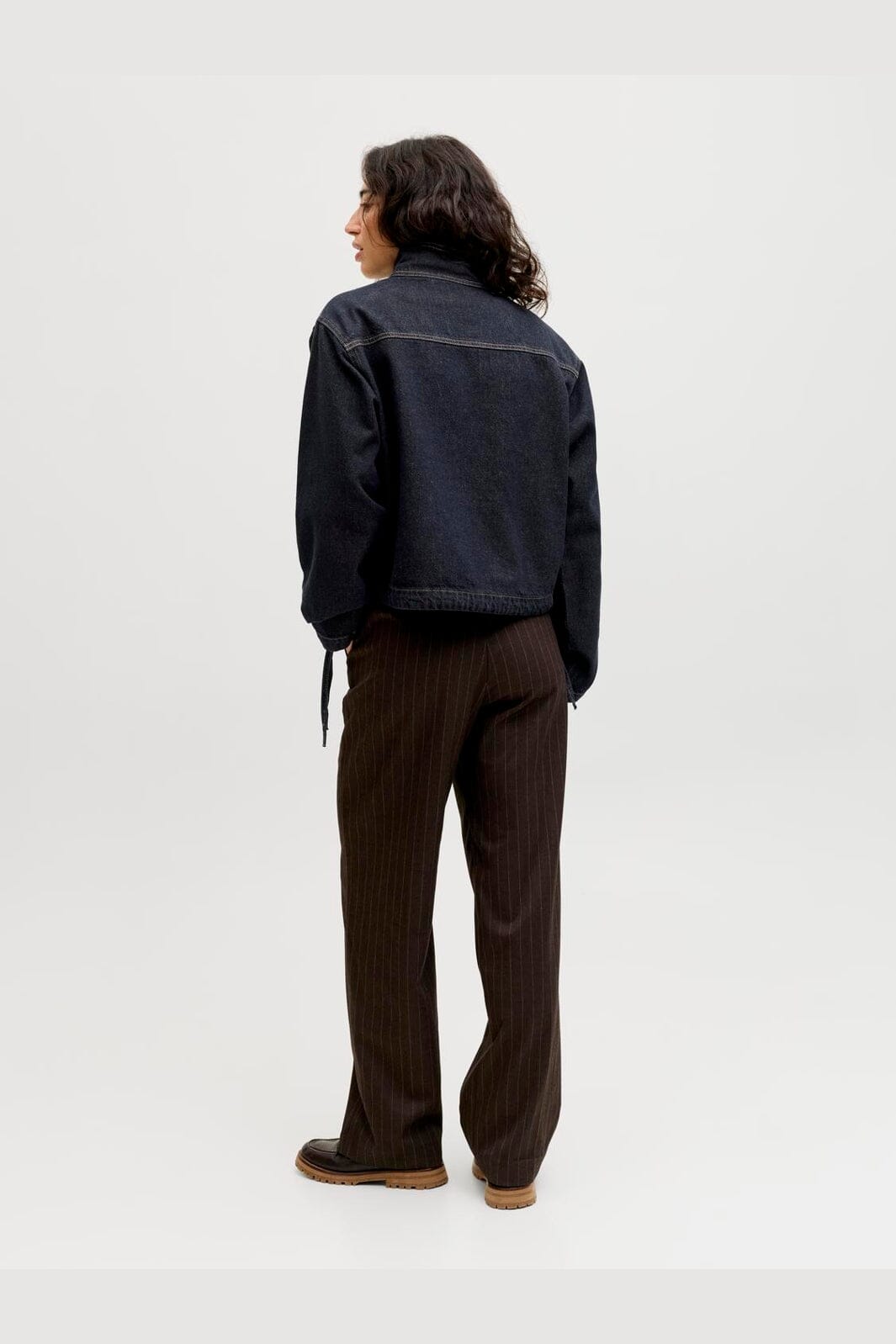 Denim-pullover van Jjxx in donkerblauwe denim met een hoge kraag en halve knoopsluiting. Hij heeft een losse pasvorm en een borstzak aan de voorkant. Touwtjes in de taille geven de mogelijkheid om de pasvorm aan te passen.