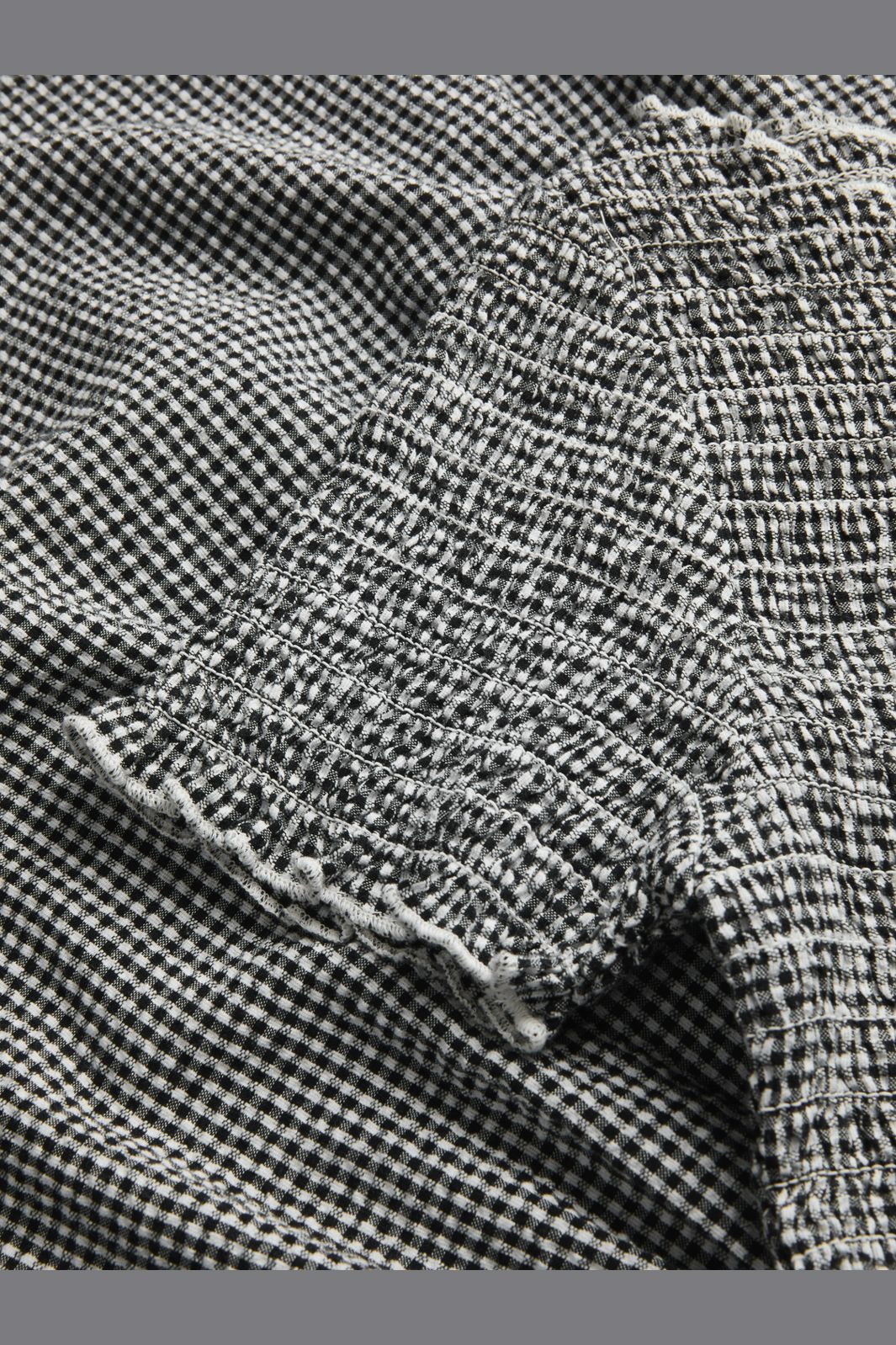 Zwart-wit geruite jurk van Jjxx met seersucker-stof. De jurk heeft een nauwsluitend bovenstuk met smock-effect en een ronde halslijn, die zorgt voor een goede pasvorm rond het bovenlichaam.