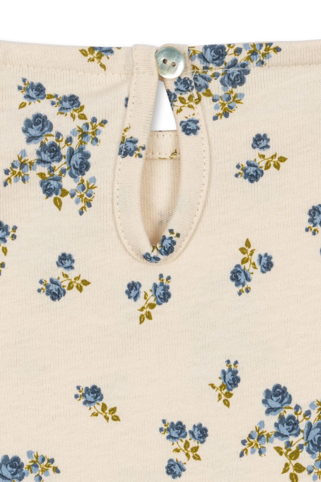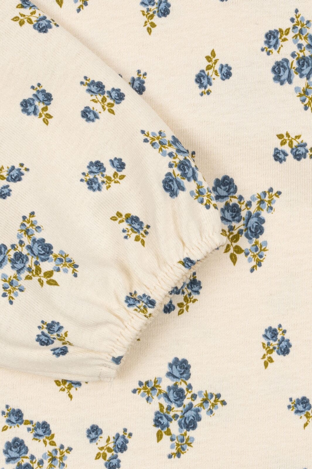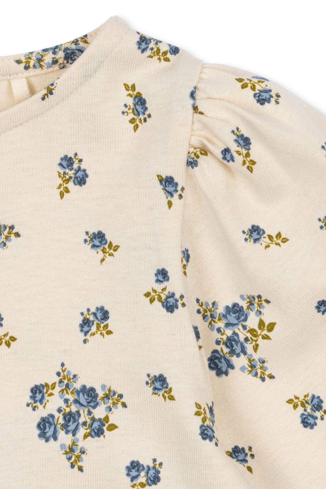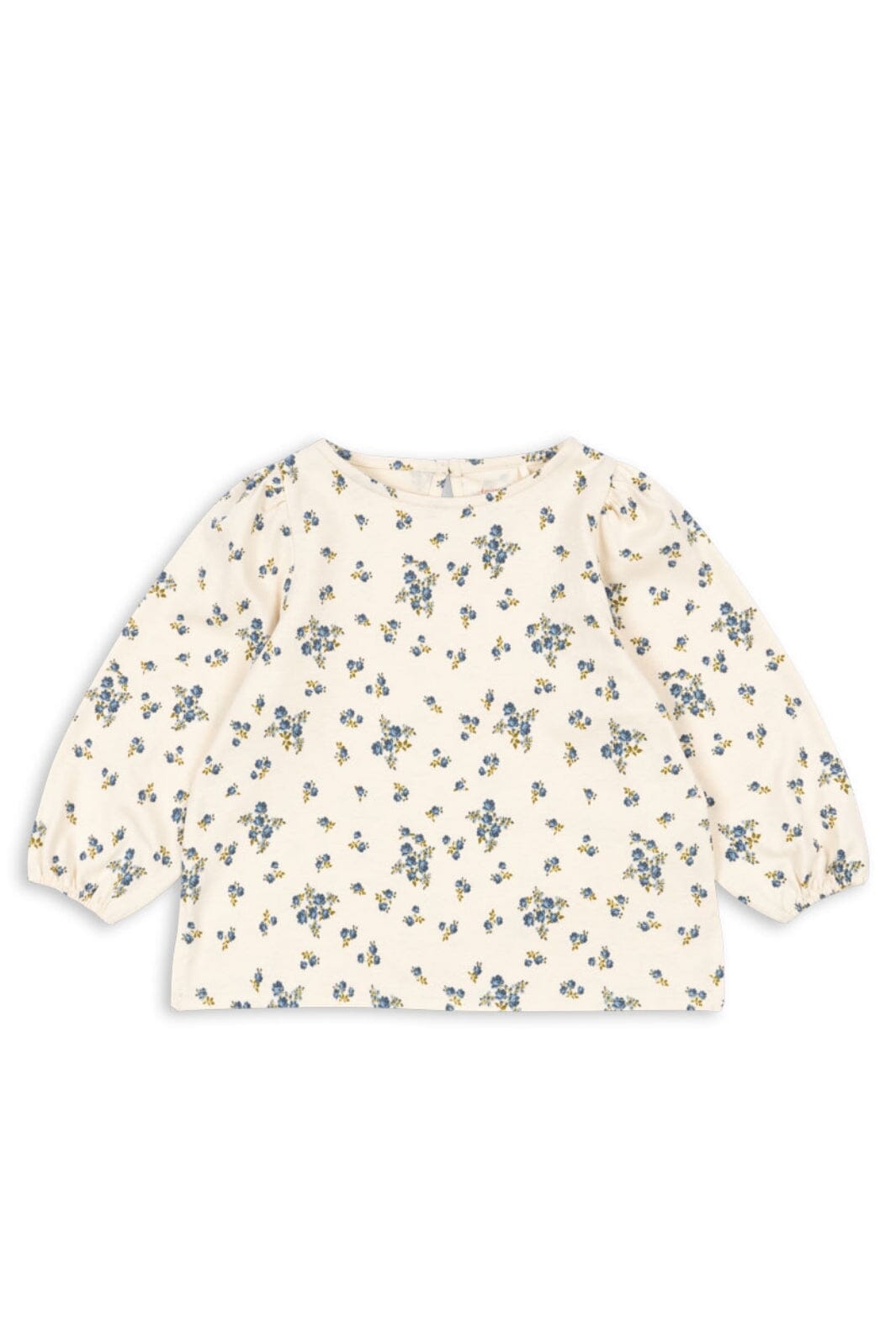 Blouse van Konges Sløjd met kleine blauwe bloemen op een lichte achtergrond. De blouse heeft lange mouwen en een ronde halslijn.