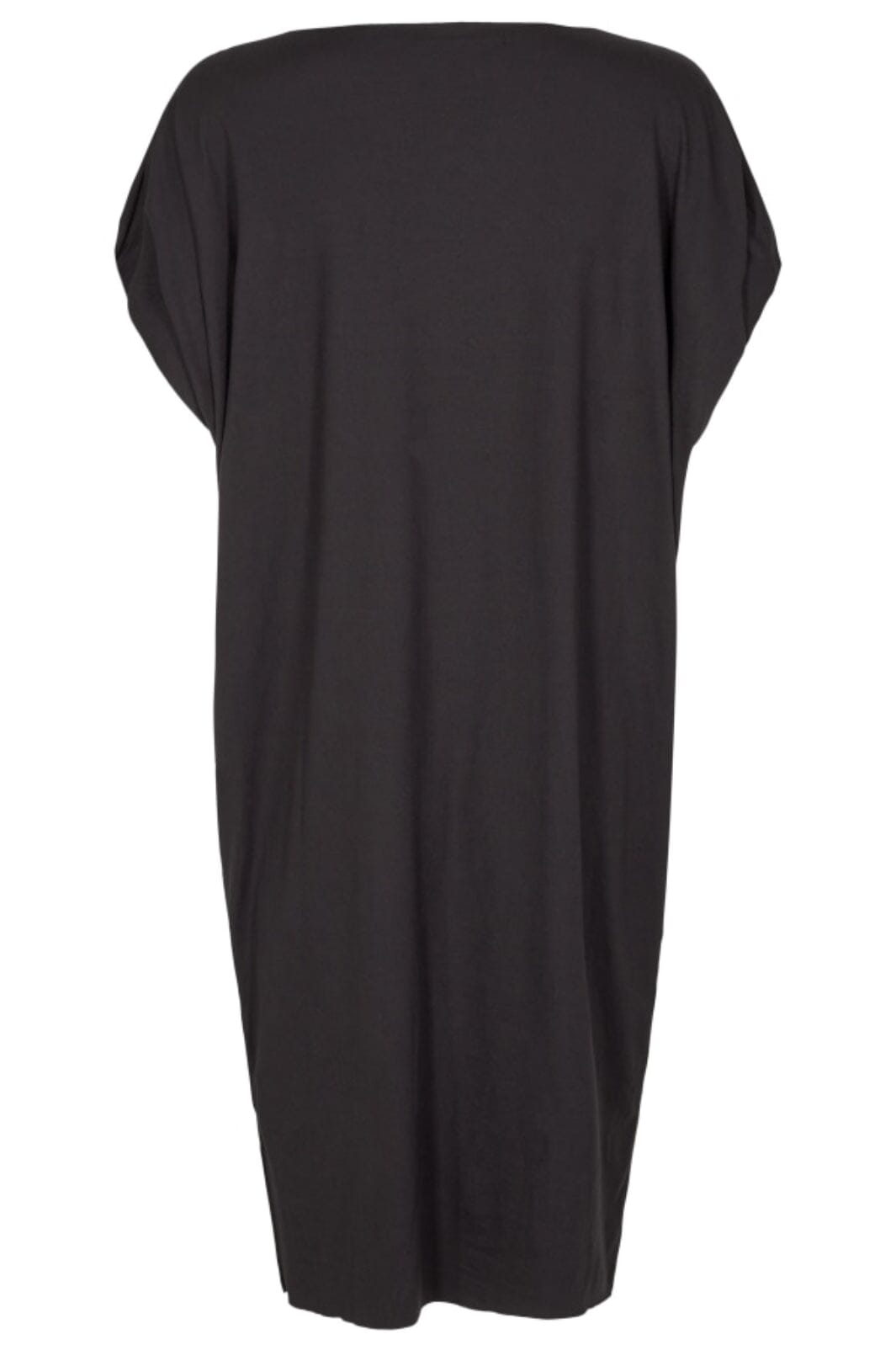 Zwarte tuniek van Liberte met ronde hals en korte mouwen. De knielange tuniek heeft een losse en ontspannen pasvorm met een zachte val.