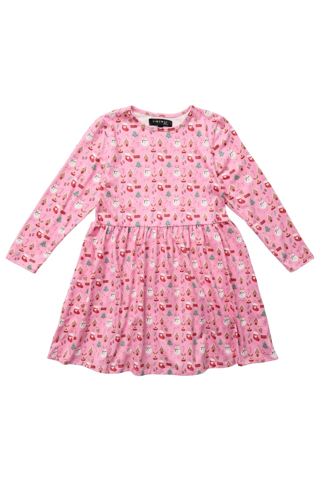 Liberté Ami Alma-Ls-Babydoll-Dress (Kids) Kleur: Christmas Time Pink X-Mas23