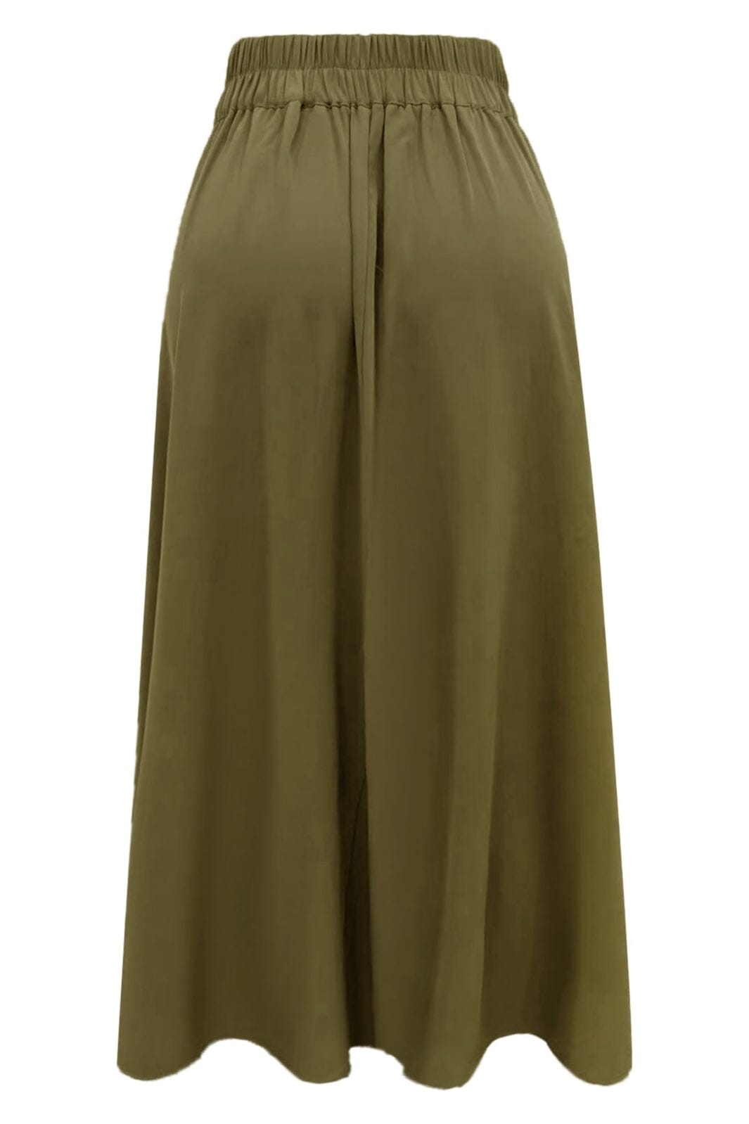 Lange rok van Liberte in legergroen. De rok heeft een vloeiende silhouet en een normale taillehoogte met elastiek in de taille.