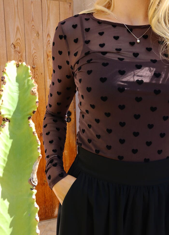 Liberte Mesh-Ls-Tshirt 22065 Kleur: Dark Brown Black Flock Heart