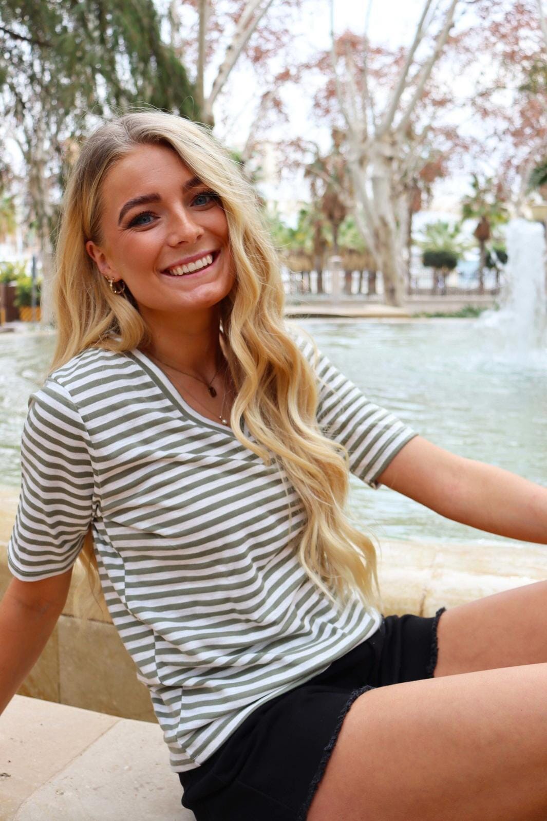 Liberte Ltulla-Ss-Vneck-Stripe-Tshirt Kleur: Army White Stripe