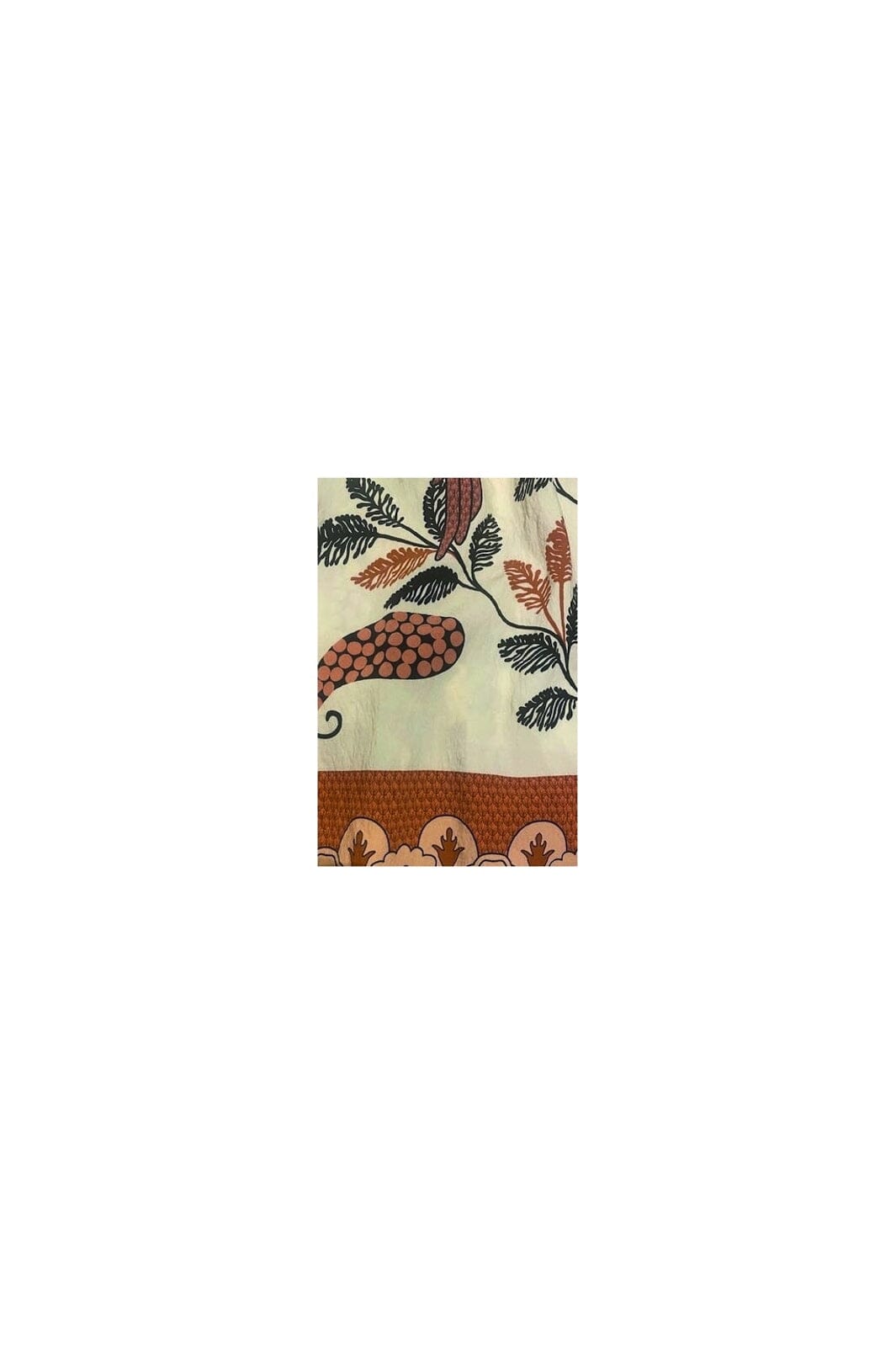 Maxi jurk van Lollys Laundry in crème met een botanisch patroon. De jurk combineert stippen en bloemen in tinten van oranje en zwart en heeft 3/4 mouwen.