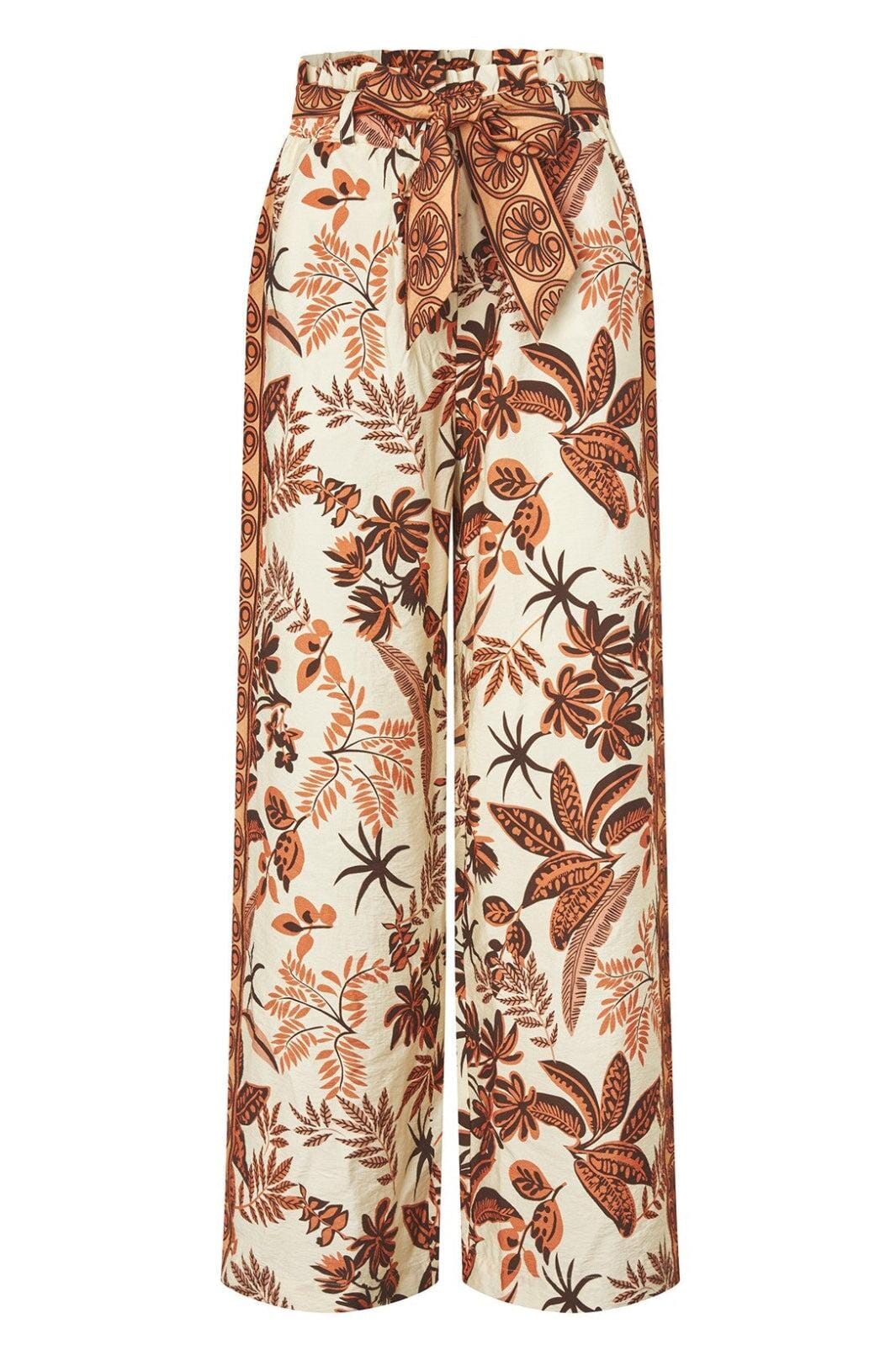 Crèmekleurige broek van Lollys Laundry met een mix van bloemen, paisley en stippen. De broek heeft een licht en luchtig design met een decoratief patroon op een lichte achtergrond.