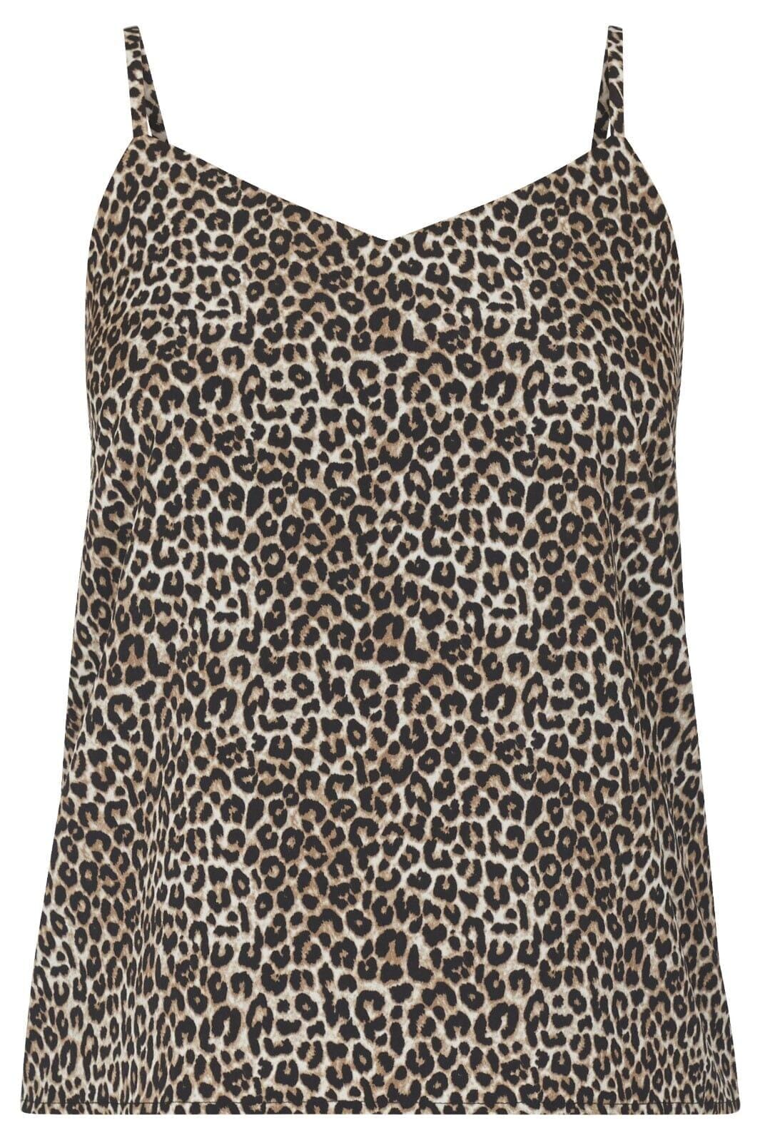is een leuke top in een trendy leo print. De top heeft dunne verstelbare bandjes en een kleine v-hals. Het heeft een normale pasvorm. Het model is 171 cm lang en draagt maat S.
