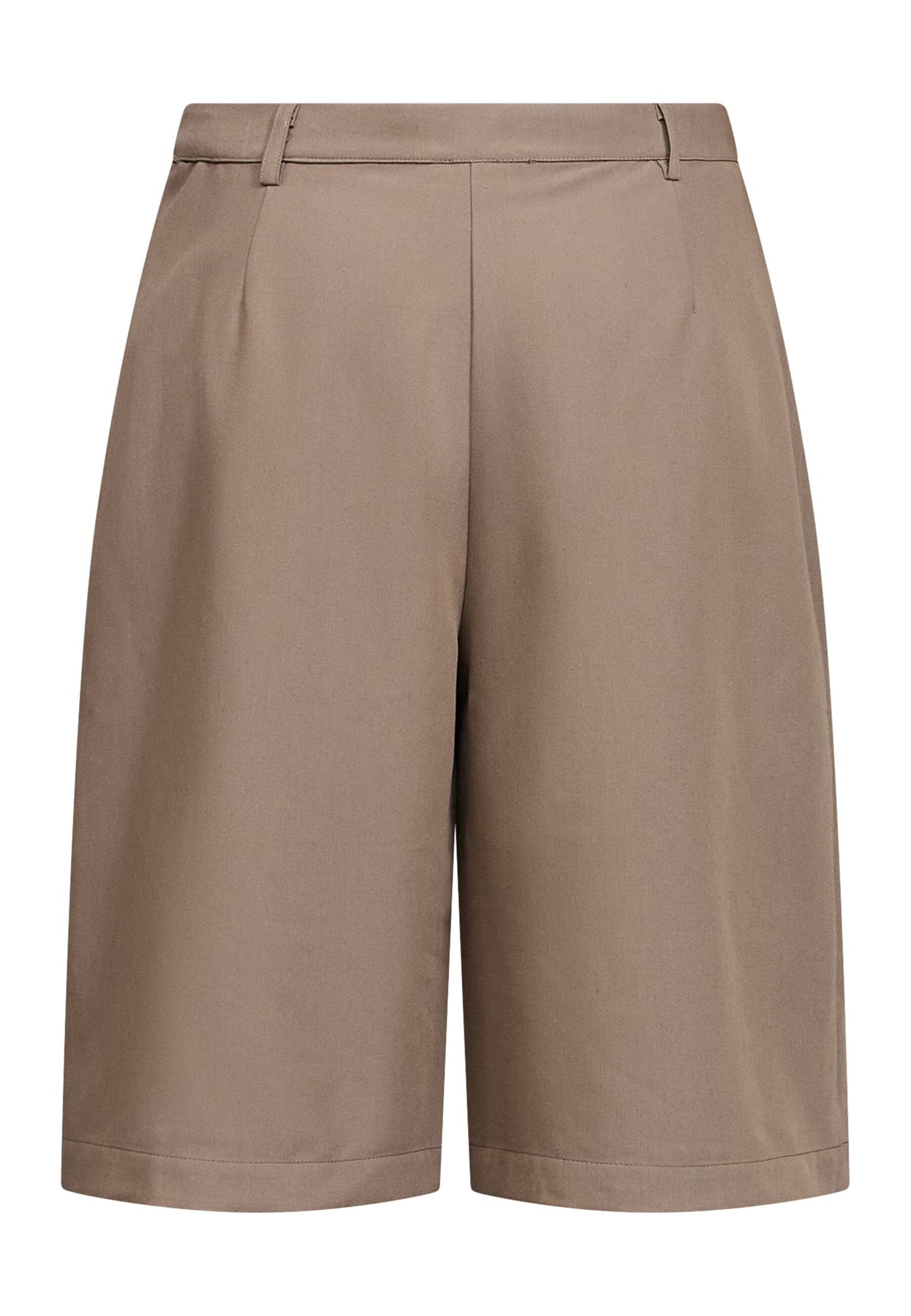 Zandkleurige bermudashorts van Love & Divine met een hoge taille en een losse pasvorm. De shorts vallen rond de knieën en hebben riemlussen en zakken.