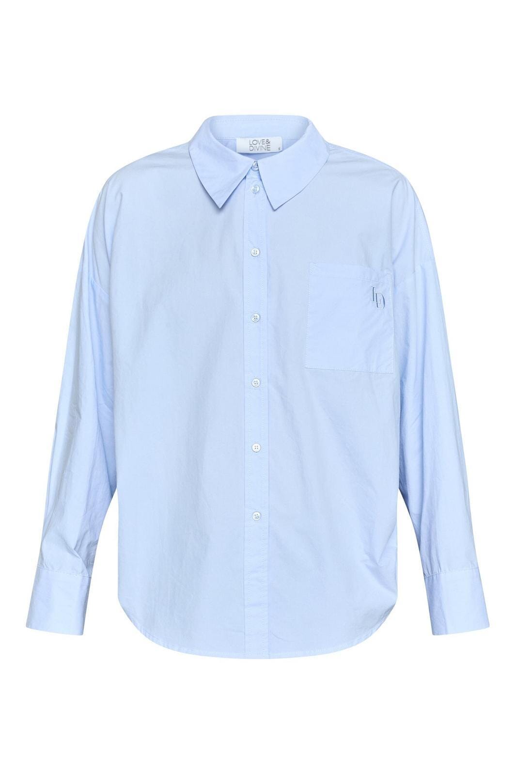 Lichtblauw overhemd van Love & Divine, gemaakt van 100% katoen. Het overhemd heeft een klassieke kraag en knoopsluiting.