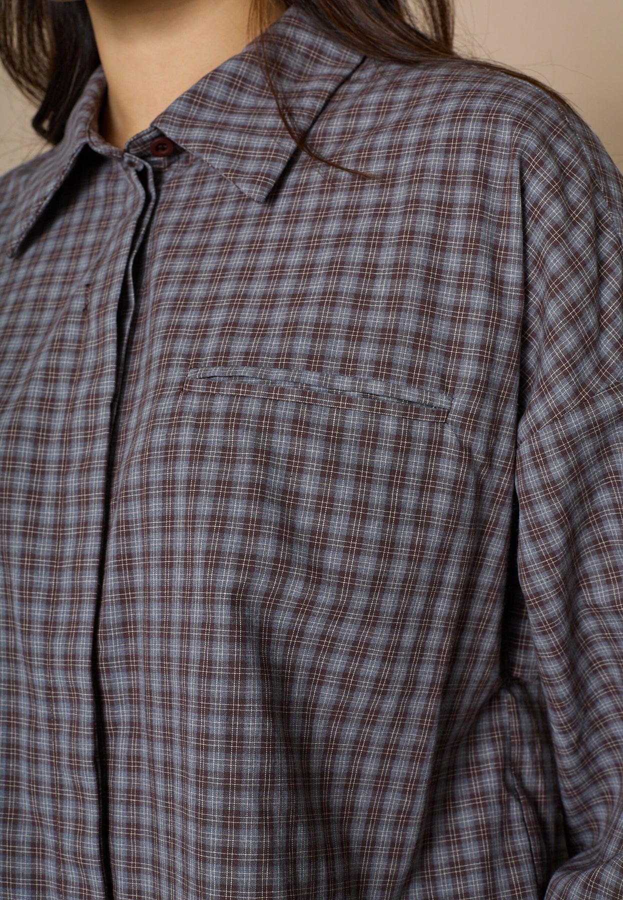 Een bruin geruit overhemd van Love & Divine, gemaakt van 100% katoen in een combinatie van bruine en grijze ruiten.