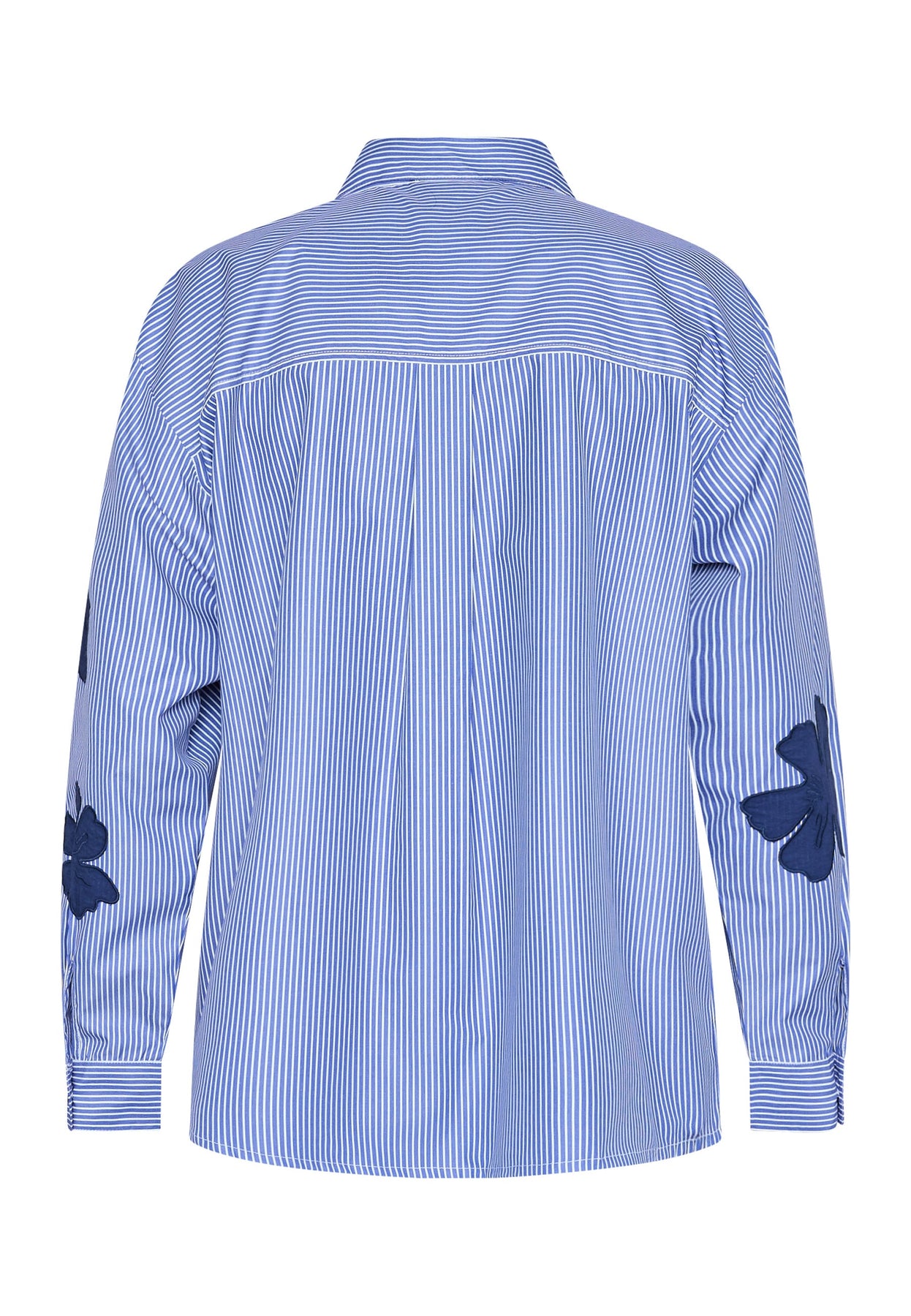 Gestreepte blouse van Love & Divine met grote donkerblauwe bloemenapplicaties. De blouse is gemaakt van 100 % katoen en heeft een losse pasvorm.