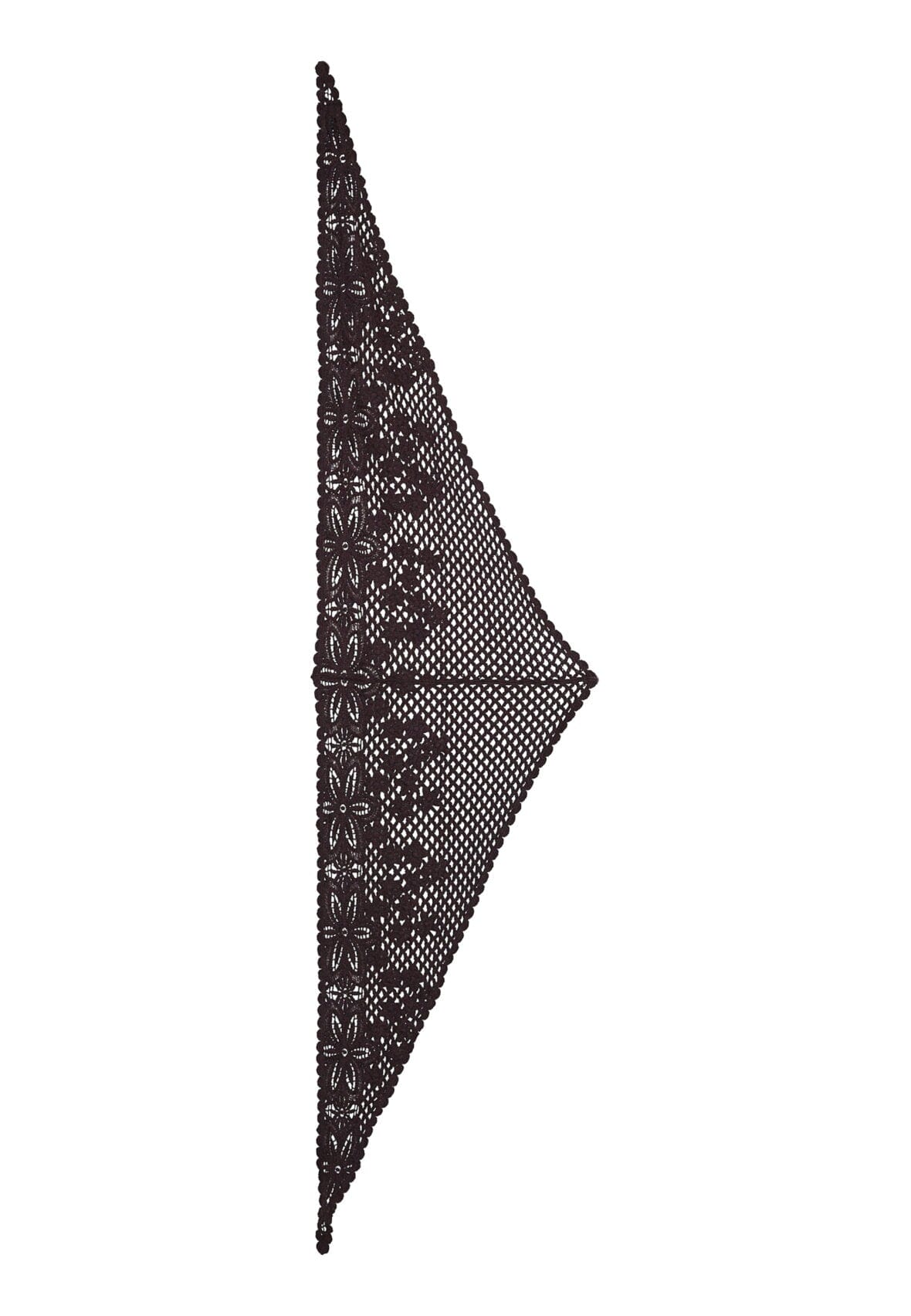 Gehaakte sjaal van Love & Divine in donkerbruin. De sjaal heeft een bloemachtig gehaakt patroon en kan op meerdere manieren worden gedragen.