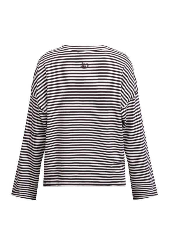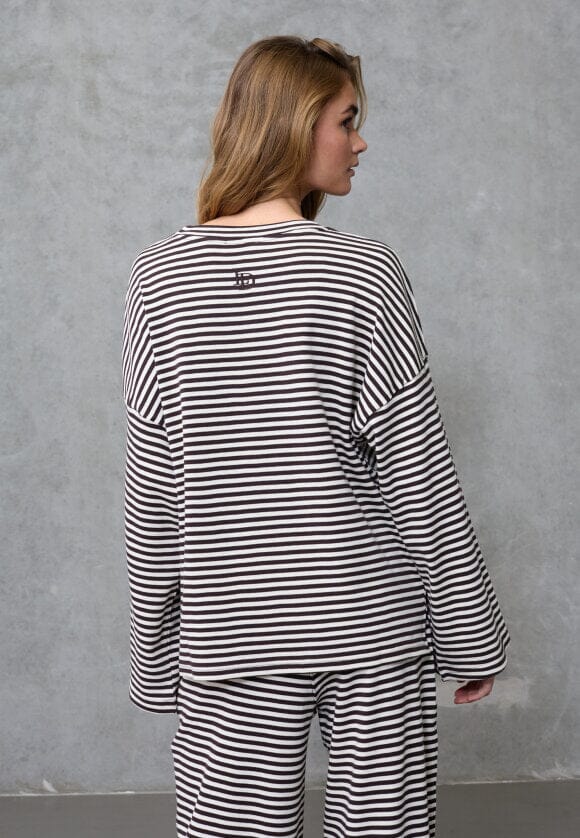 Gestreepte top van Love & Divine in crème en bruin. De top is gemaakt van 100% katoen en heeft lange mouwen met een ronde halslijn.