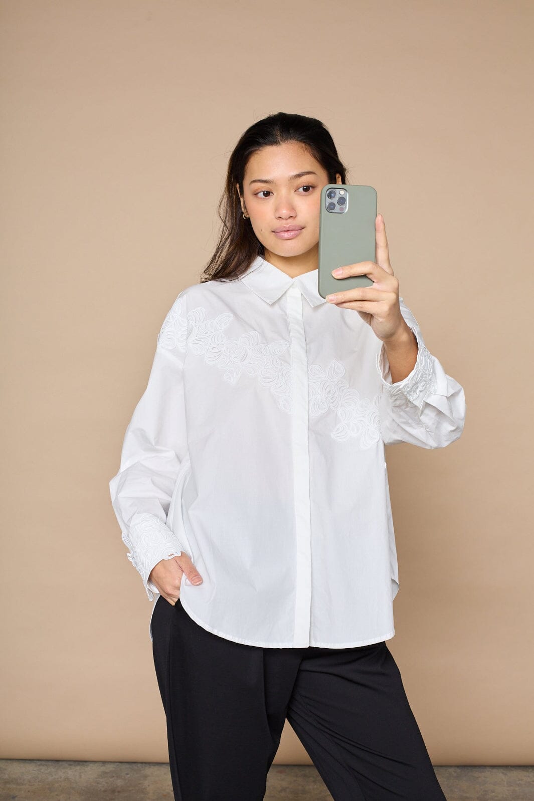 Witte blouse van Love & Divine, gemaakt van 100% katoen. De witte kleur maakt de blouse gemakkelijk te combineren met andere kleuren.