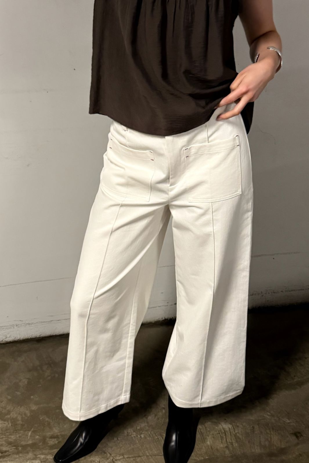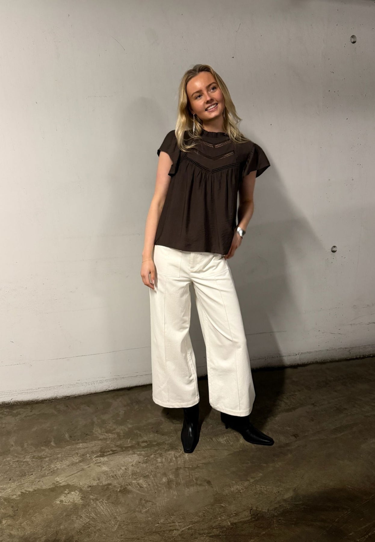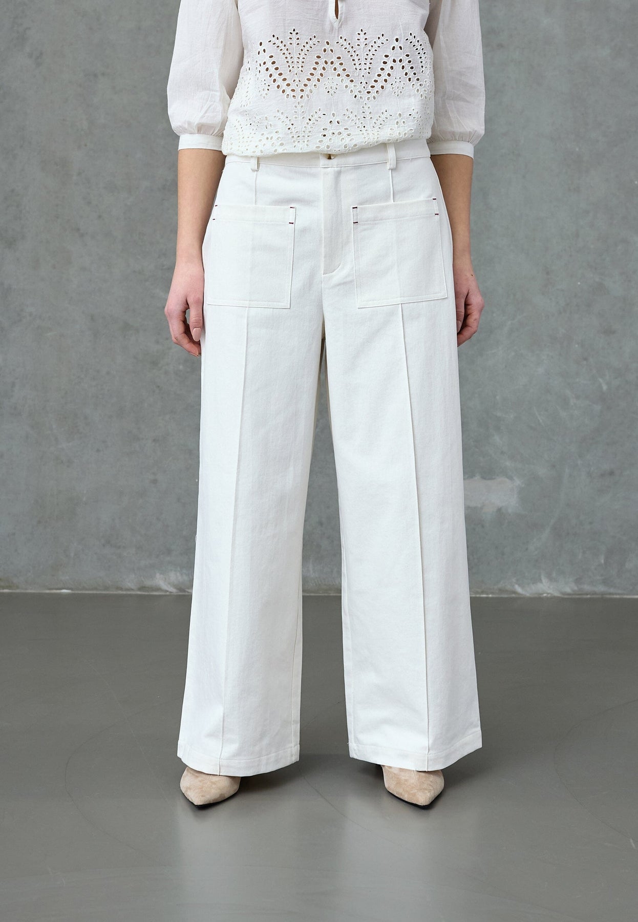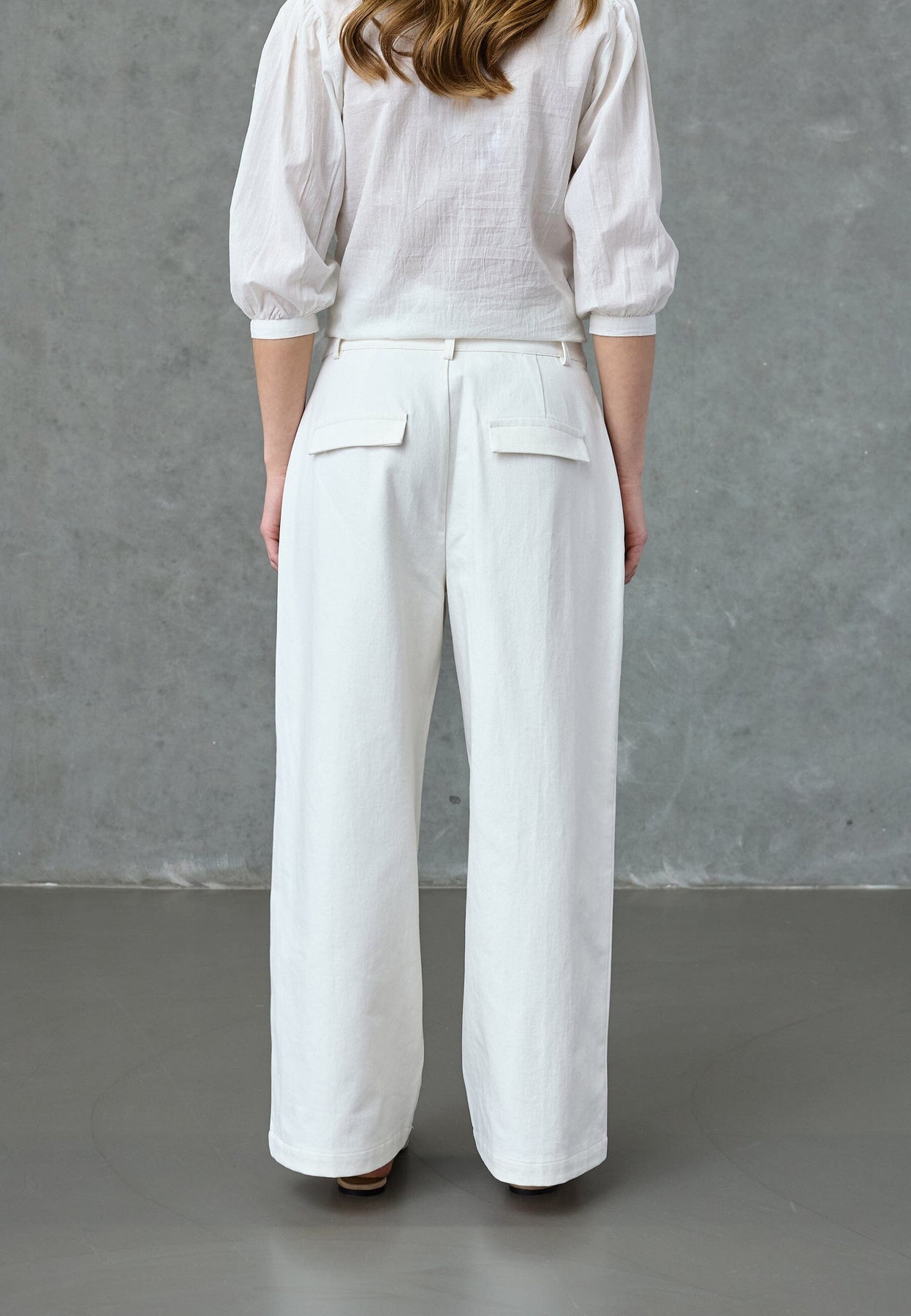 Broek van Love & Divine in een lichte crèmekleur. De broek is gemaakt van 100% katoen, dat ademend is en comfortabel om te dragen.