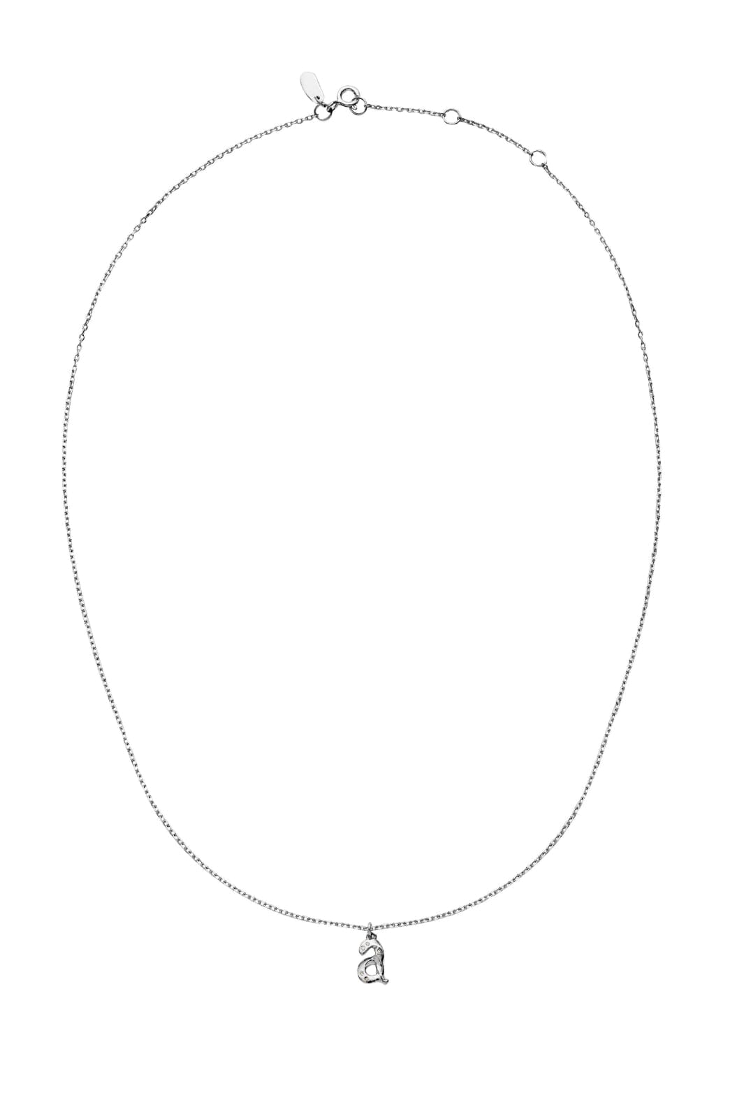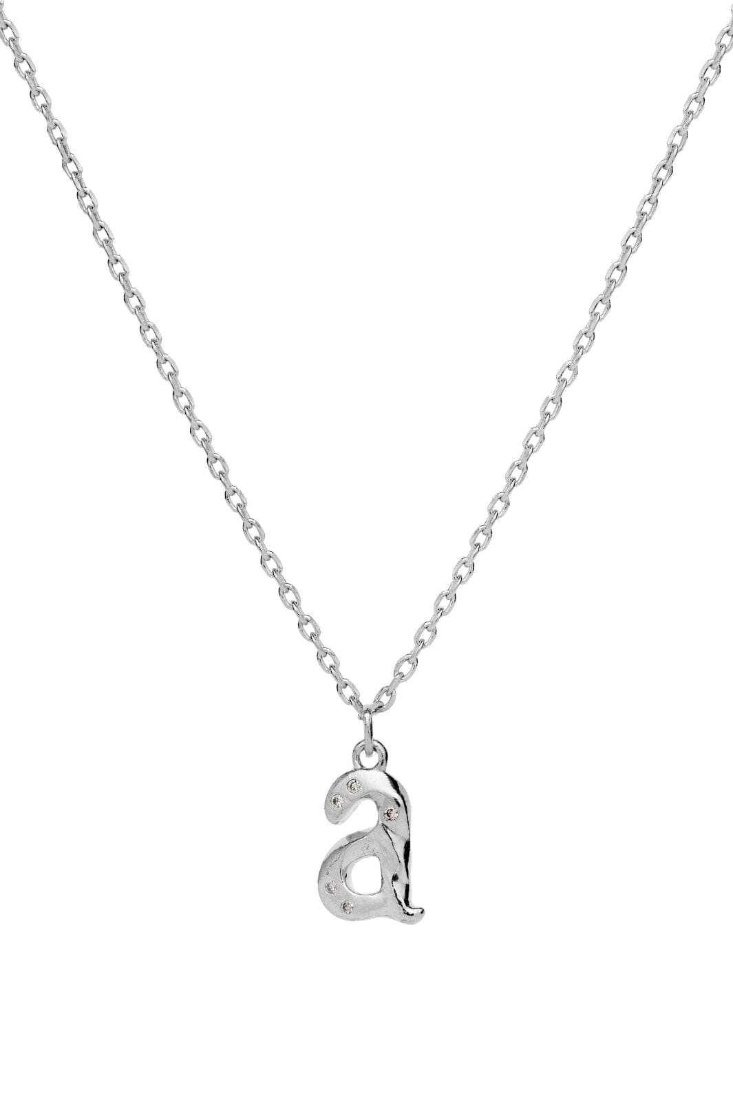 Zilveren ketting van Maanesten met de letter 'a' als hanger. Gemaakt van gerecycled sterling zilver met kleine decoratieve details op de hanger.