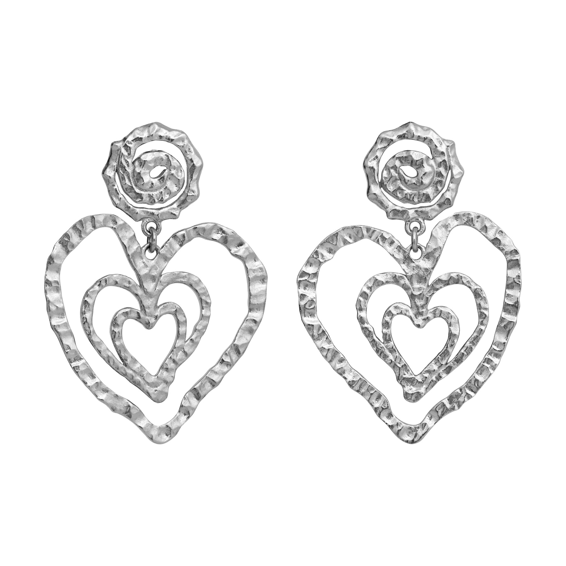 Oorbellen van Maanesten, gemaakt van gerecycled sterlingzilver met overlappende hartvormen en een gehamerde afwerking.