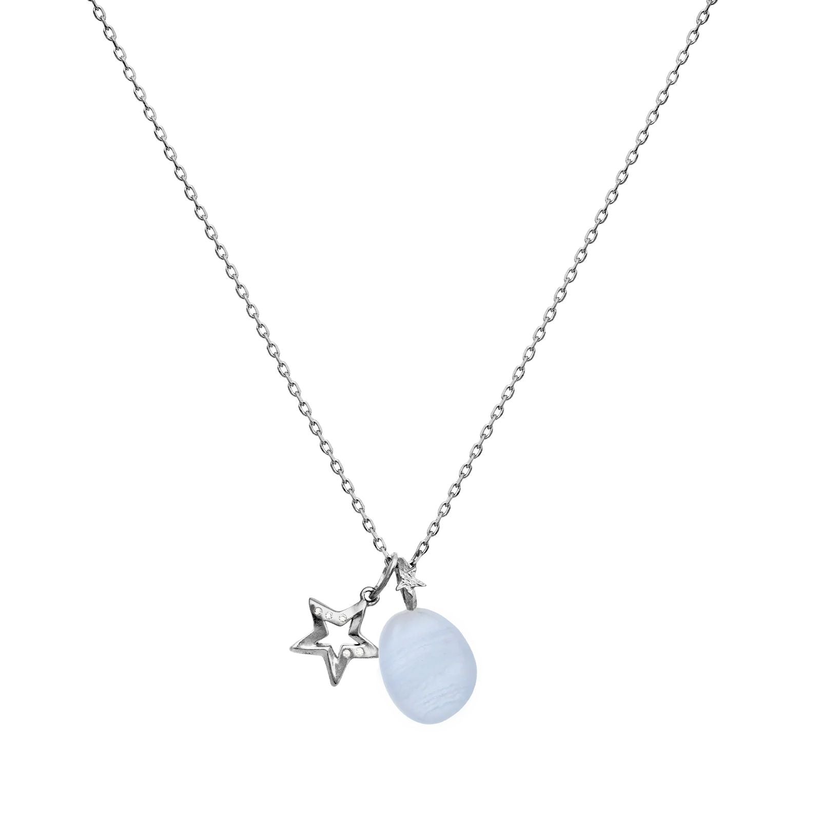 Hanger van Maanesten met een lichtblauwe steen en een stervormig detail in zilver. De hanger is gemaakt van gerecycled sterlingzilver 925.