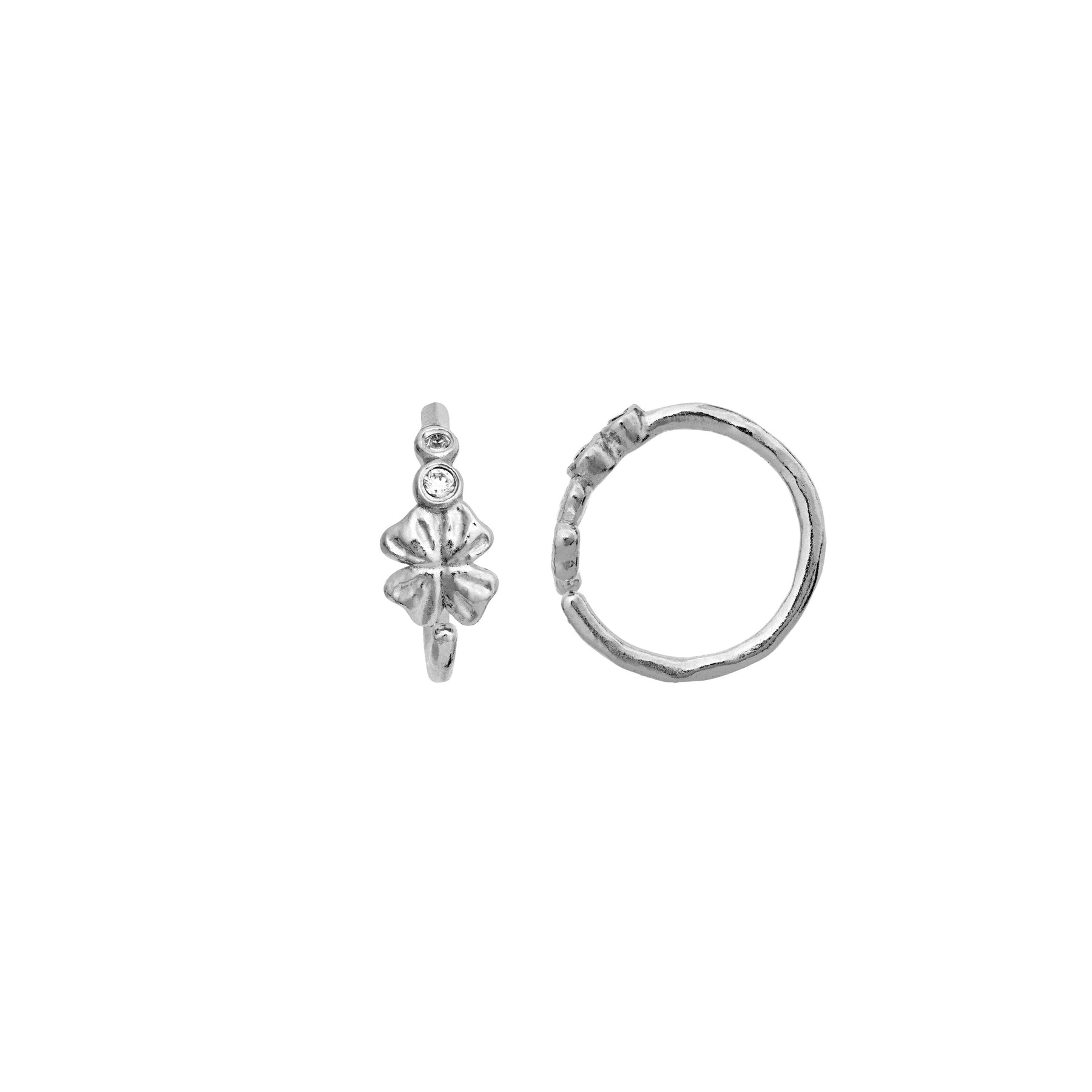 Oorbellen van Maanesten, gemaakt van gerecycled sterlingzilver. Elke oorbel heeft een ronde vorm met bloemachtige versiering en kleine ingezette steentjes.