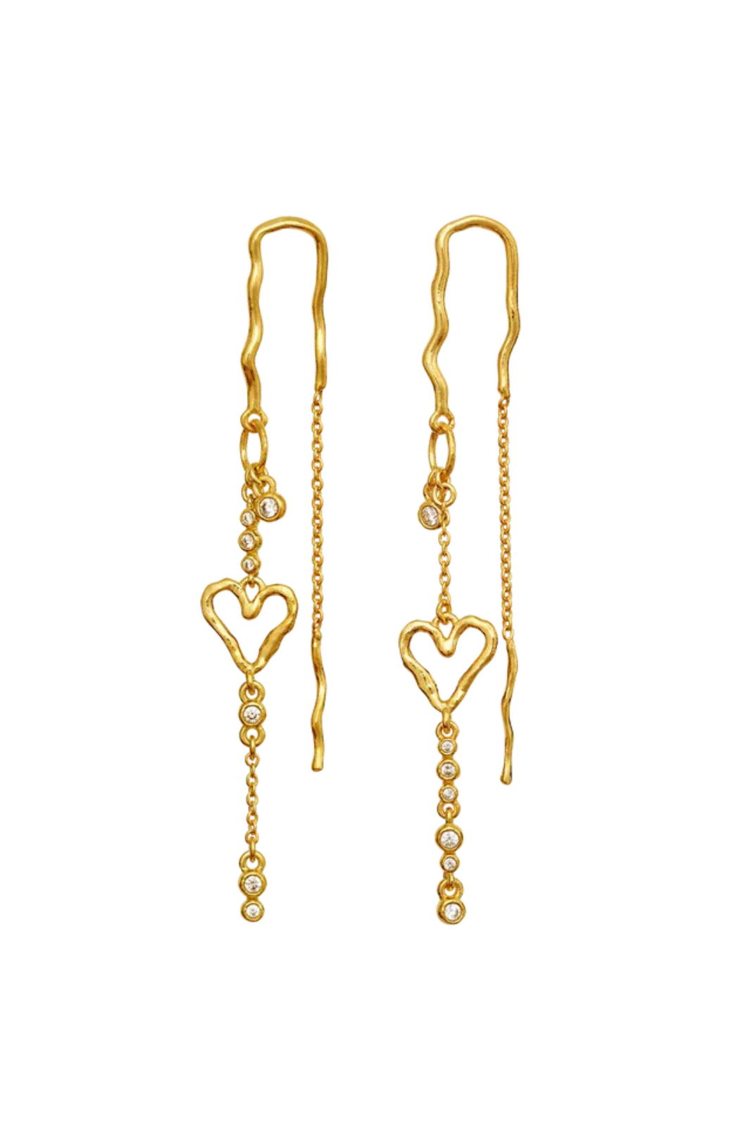 Oorbellen van Maanesten, gemaakt van gerecycled sterlingzilver, verguld met 18 karaat goud. De oorbellen zijn versierd met witte zirkonia in een slanke vorm.