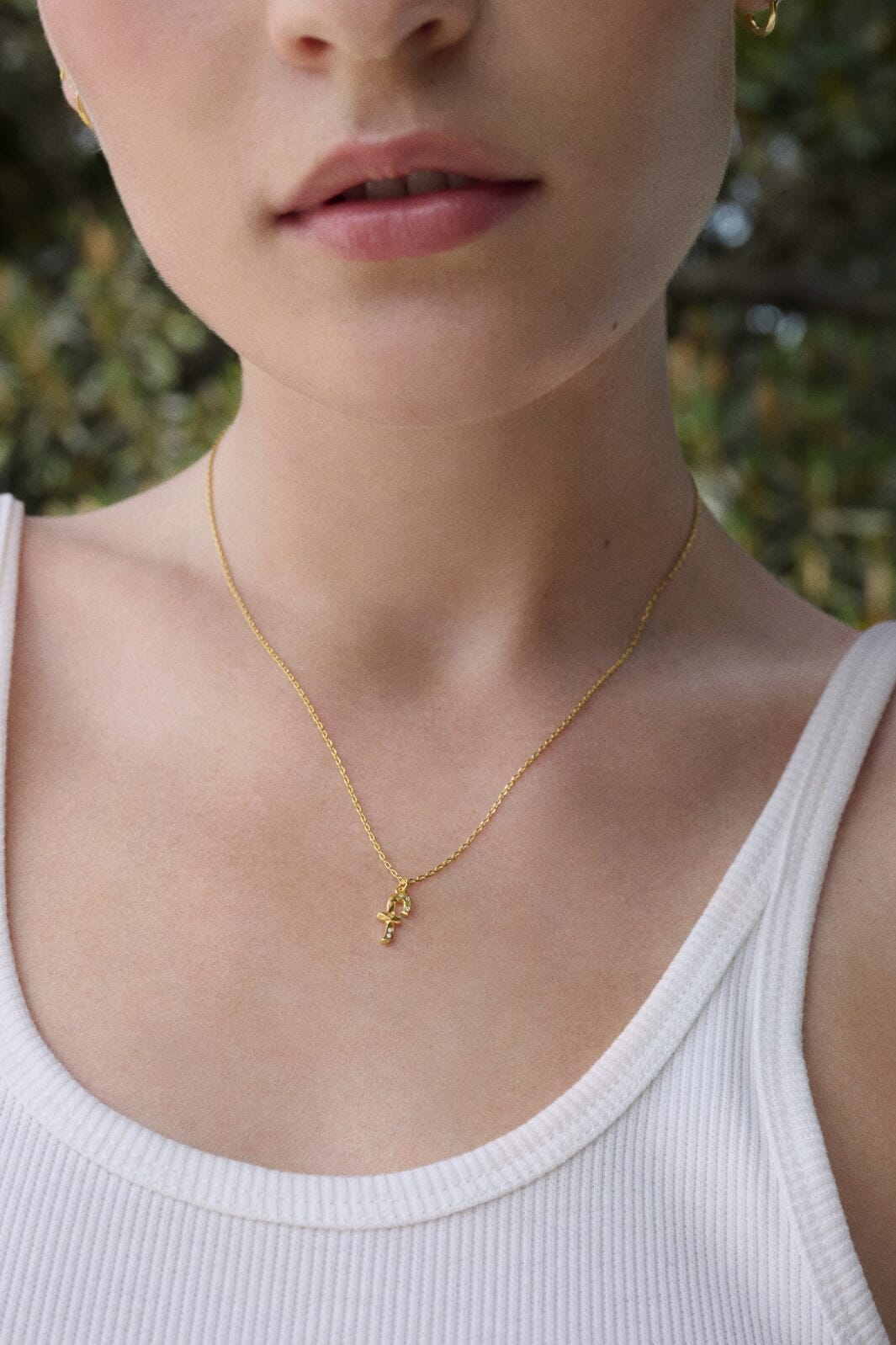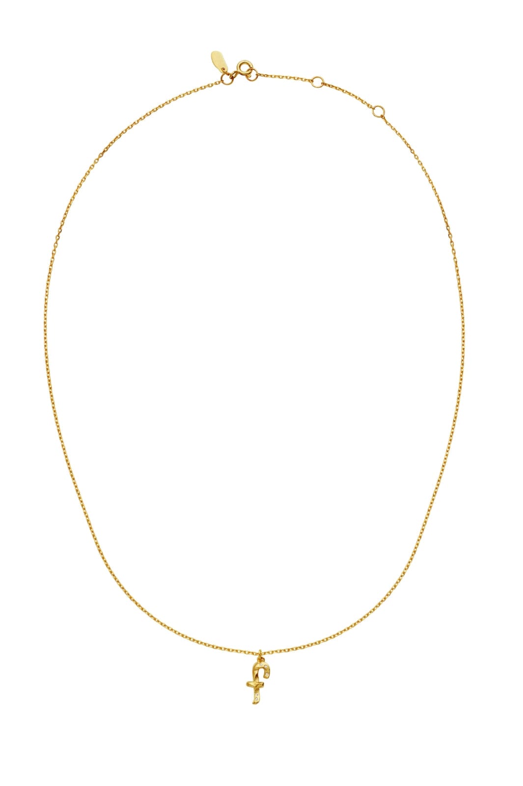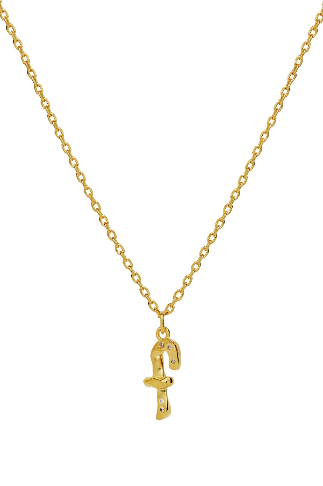 Goudgeplateerde ketting van Maanesten met een F-vormige hanger. De ketting is gemaakt van gerecycled sterling zilver met een 18-karaats goudlaag. De ketting heeft een sluiting en een verlengkettinkje.