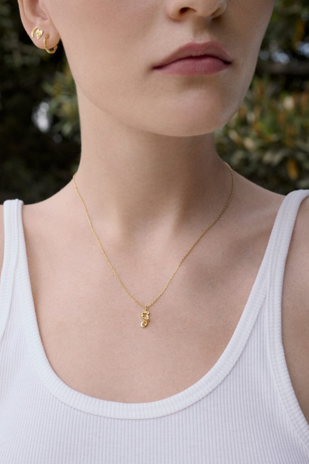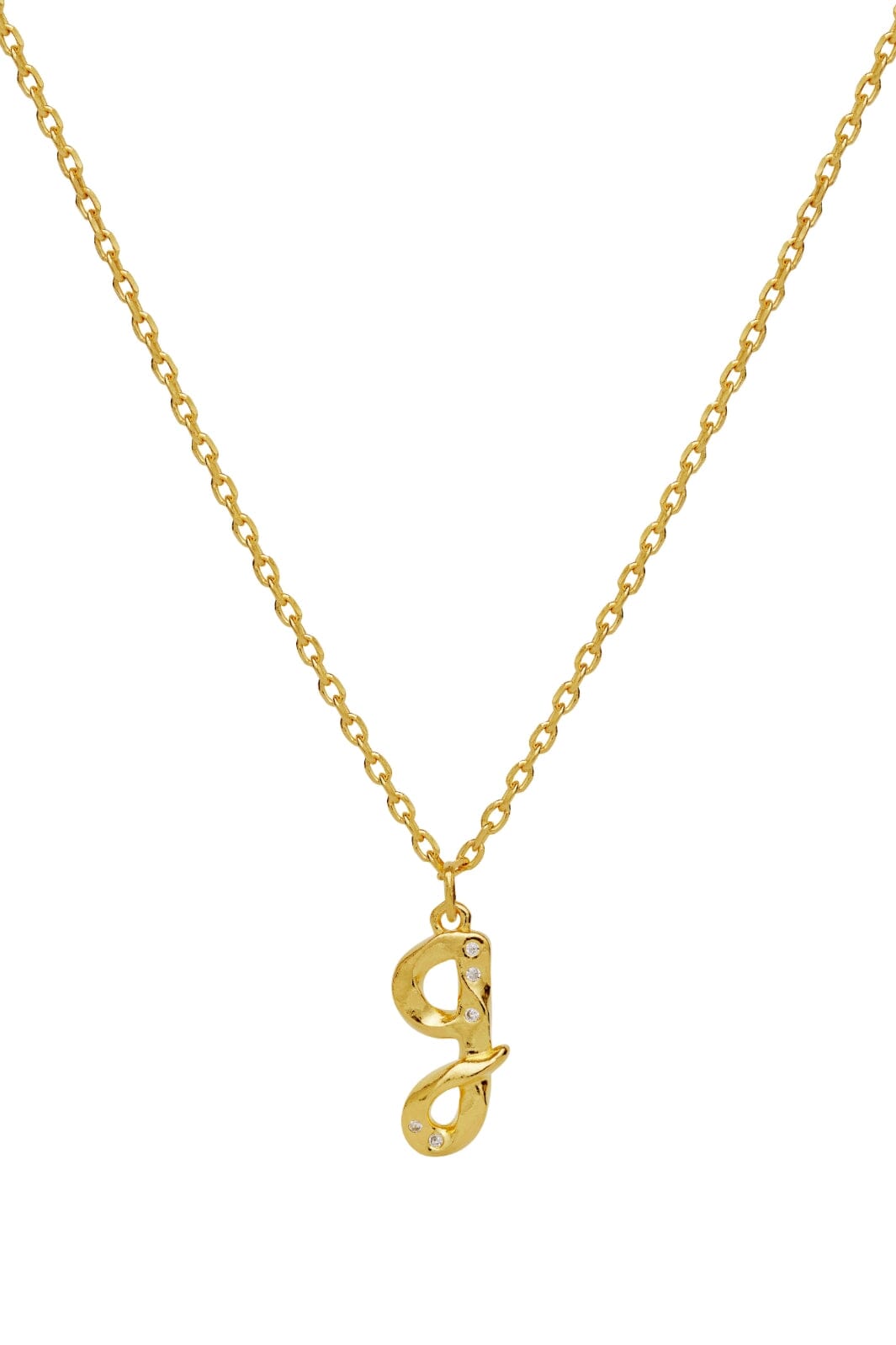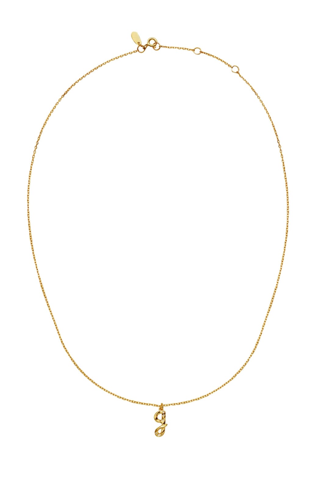 Goudgeplateerde ketting van Maanesten met een G-vormige hanger. De ketting is gemaakt van gerecycled sterling zilver met een 18-karaats goudlaag en heeft kleine decoratieve details op de hanger.