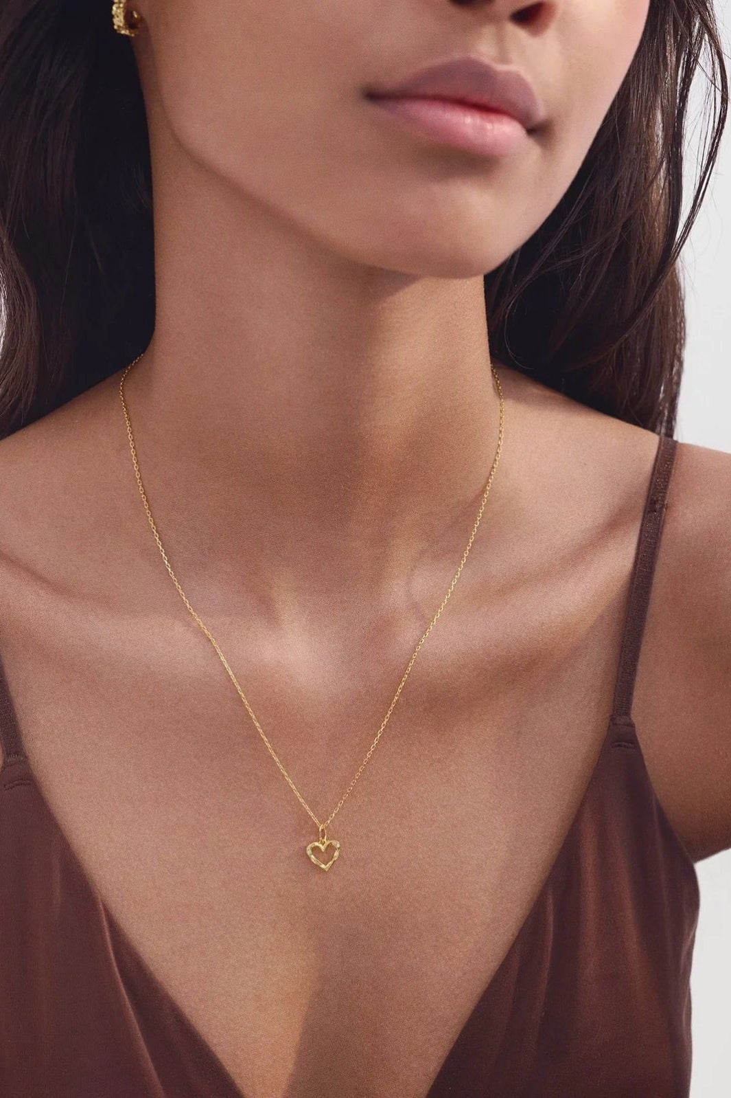 Een hanger van Maanesten met een hartvormig design. Hij is gemaakt van gerecycled sterlingzilver, verguld met 18-karaats goud in een gouden kleur.