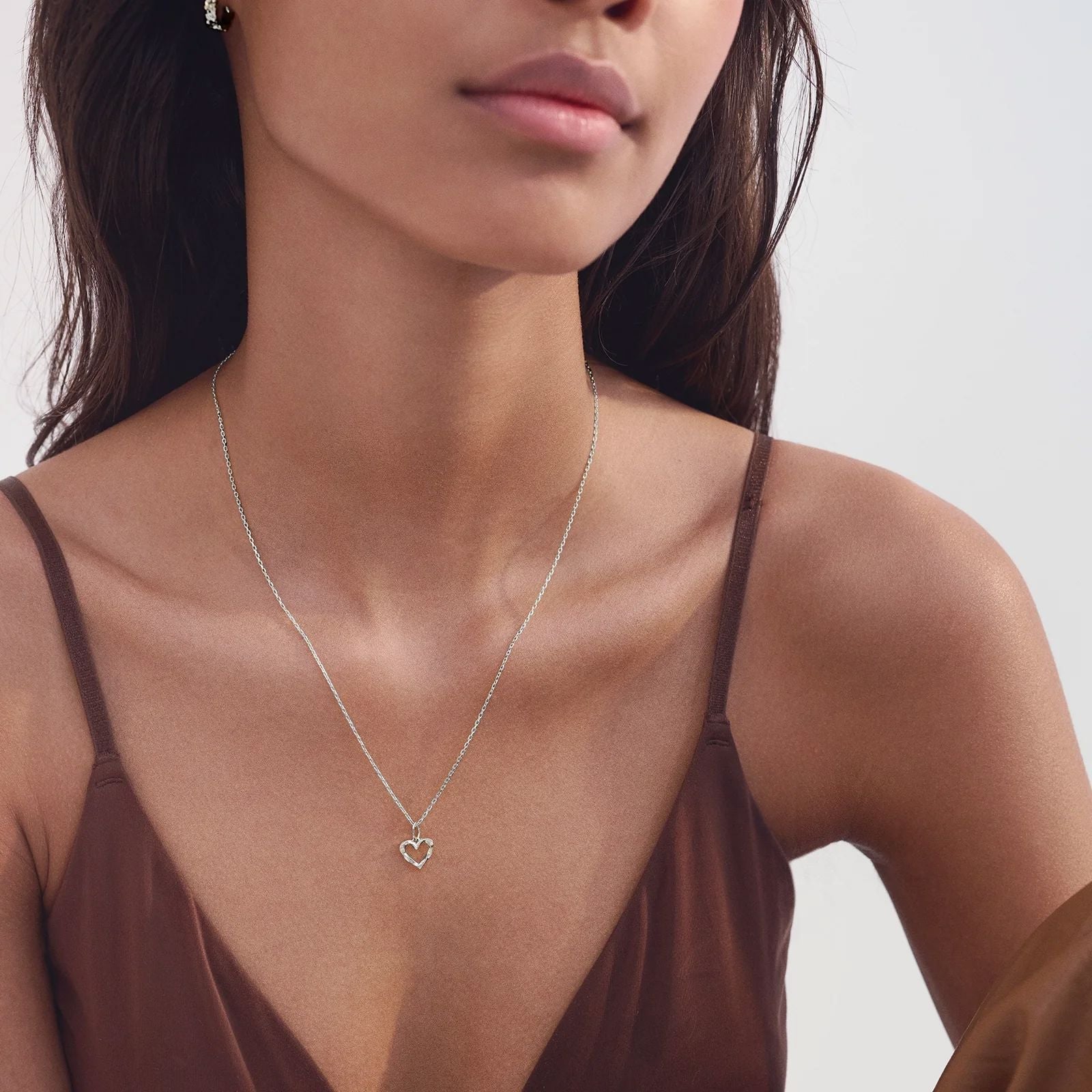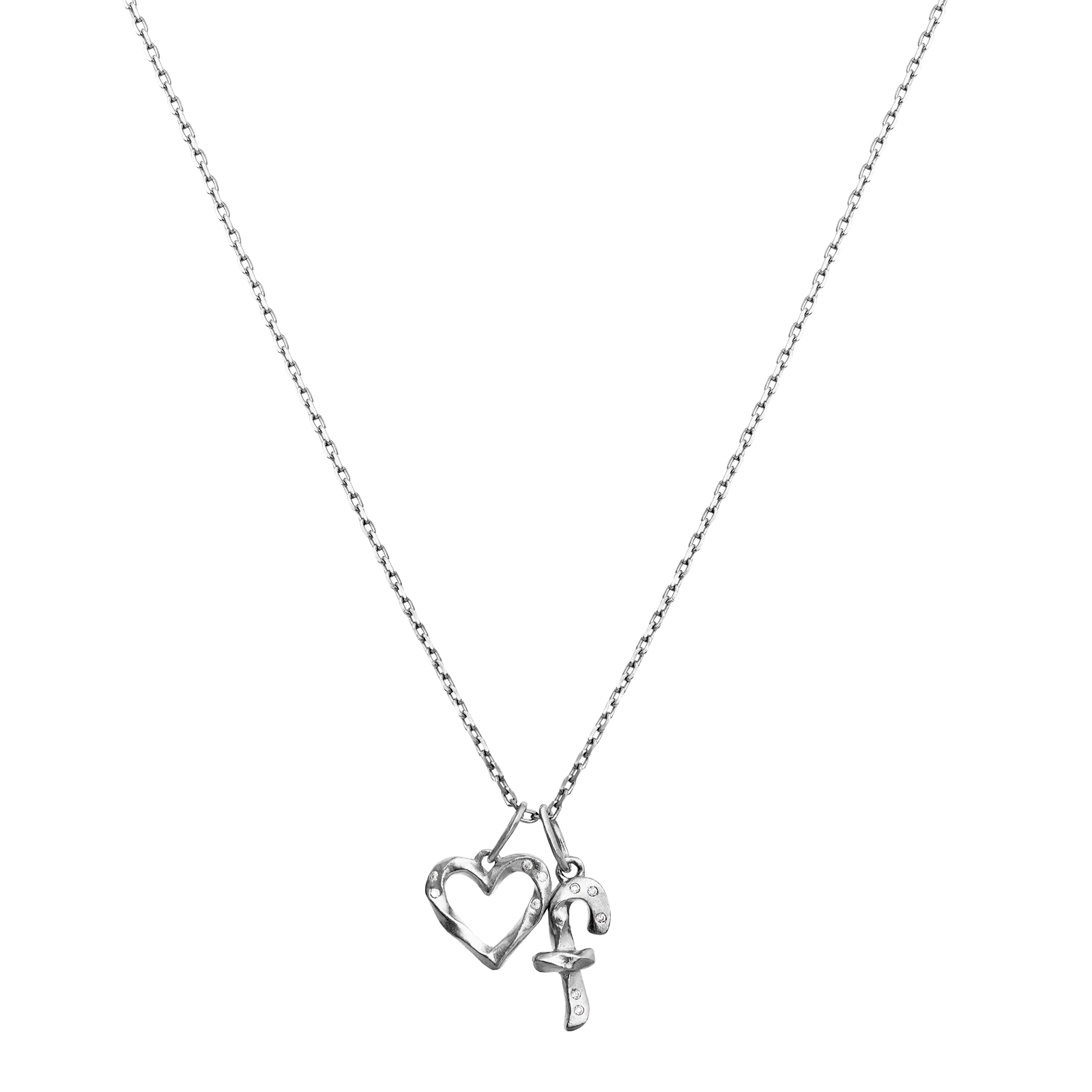 Hartvormige hanger van Maanesten, gemaakt van gerecycled sterlingzilver. De hanger heeft kleine cirkelvormige details op het oppervlak en is zilverkleurig.