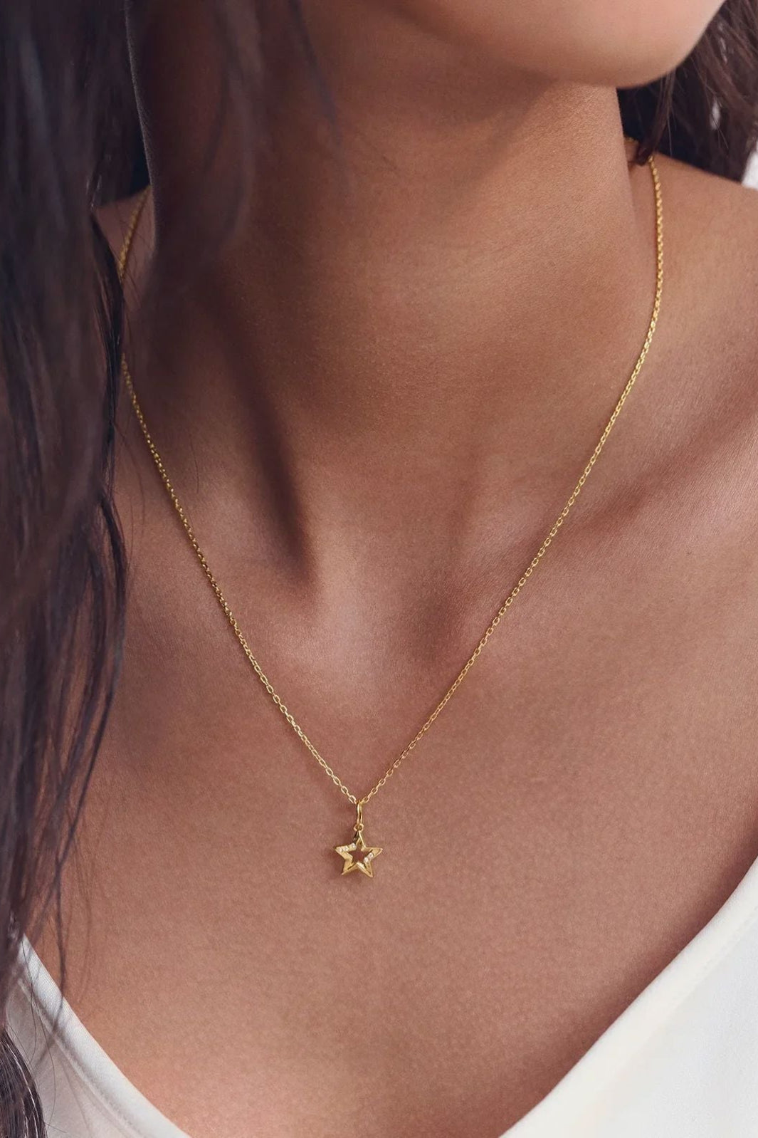 Hanger van Maanesten met een stervormig design en een gouden afwerking. Gemaakt van gerecycled sterlingzilver, verguld met 18-karaats goud.