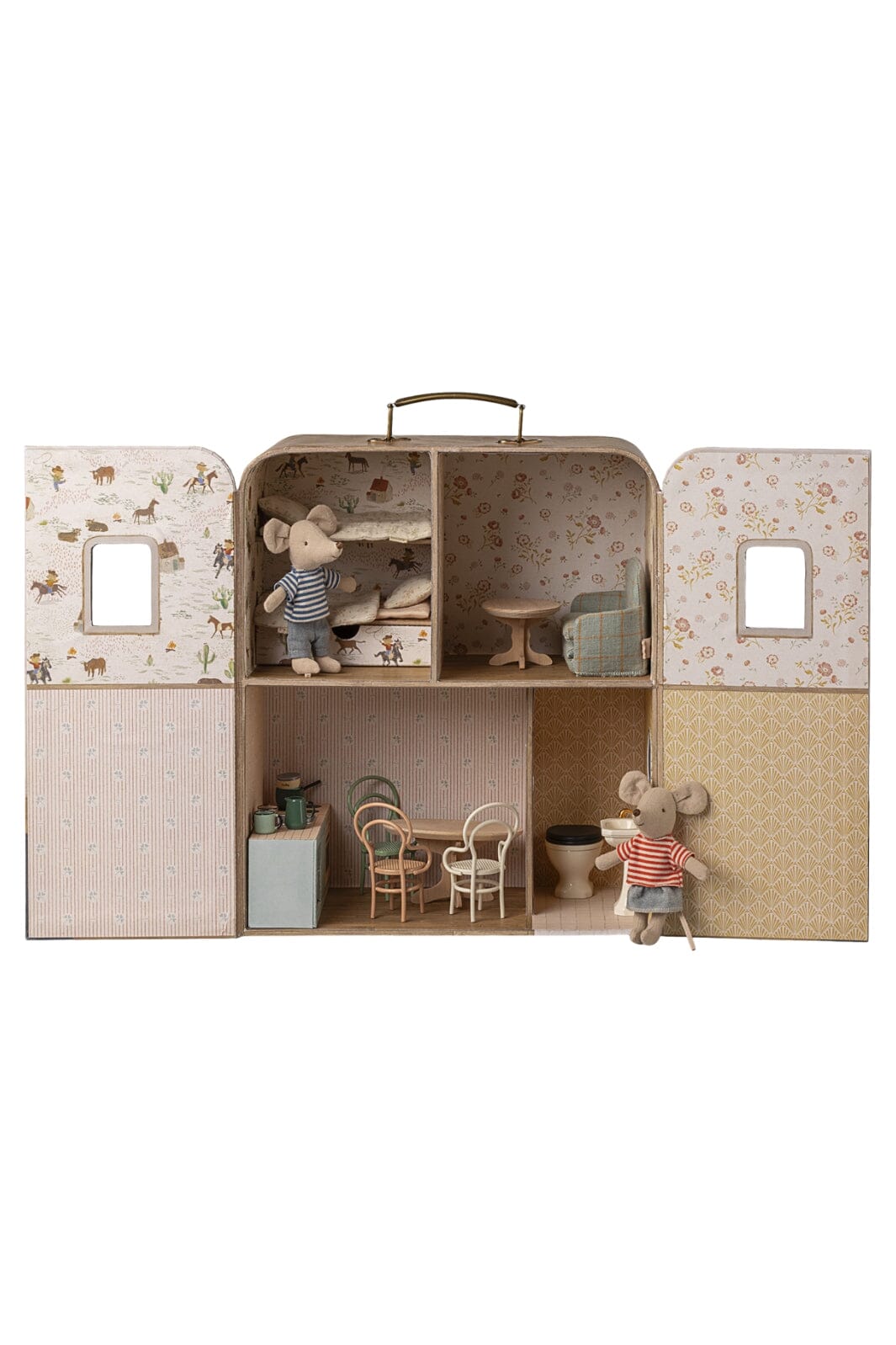 Welkom bij SuitCasa - een klein draagbaar huisje. Het is precies de juiste maat voor kleine broer en kleine zus muis. Er worden 2 sets zacht beddengoed meegeleverd voor je vrienden, maar je kunt nog veel meer kleine meubels kopen om het huisje in te richten.