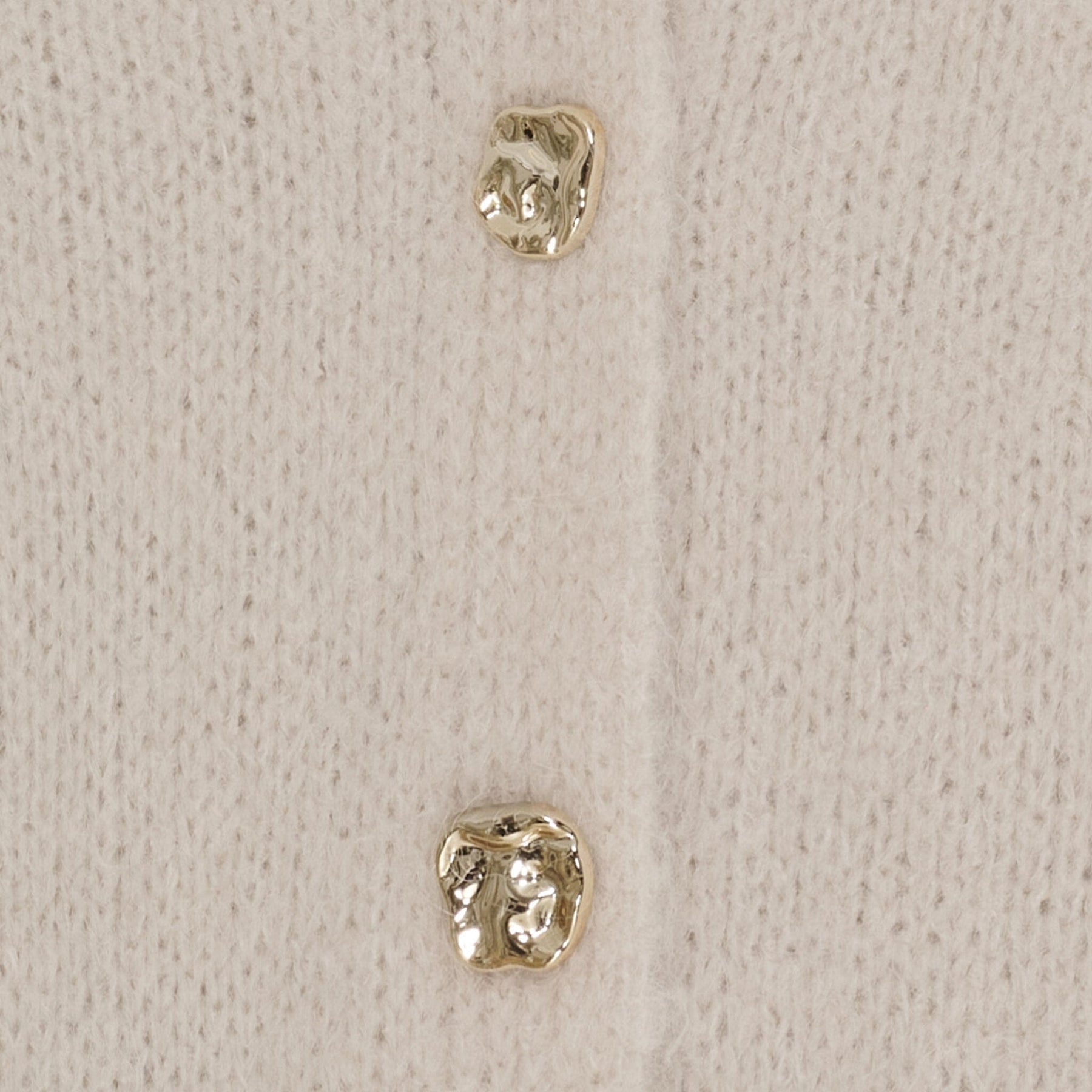 Beige vest van Marta Du Chateau met V-hals en knoopsluiting. De vest is mouwloos en heeft een geribbelde rand aan de onderkant.