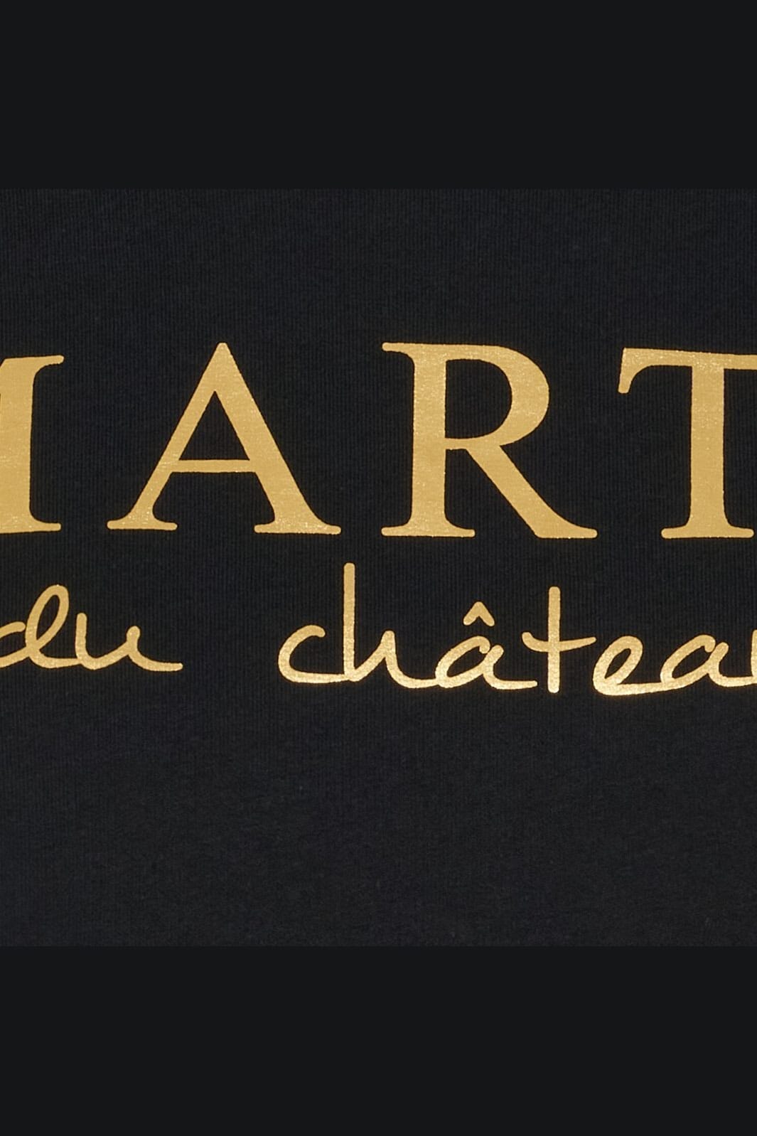 Zwarte sweatshirt van Marta Du Chateau met een goudkleurig logo aan de voorkant. Het ontwerp heeft een klassieke ronde hals en lange mouwen, waardoor het het hele jaar door draagbaar is.