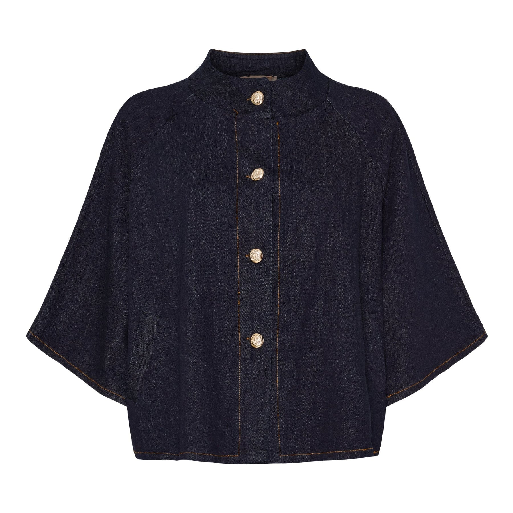 Donkerblauwe jas van Marta Du Chateau, gemaakt van katoen met een minimale hoeveelheid elastaan. De jas heeft een hoge kraag en een oversized pasvorm.