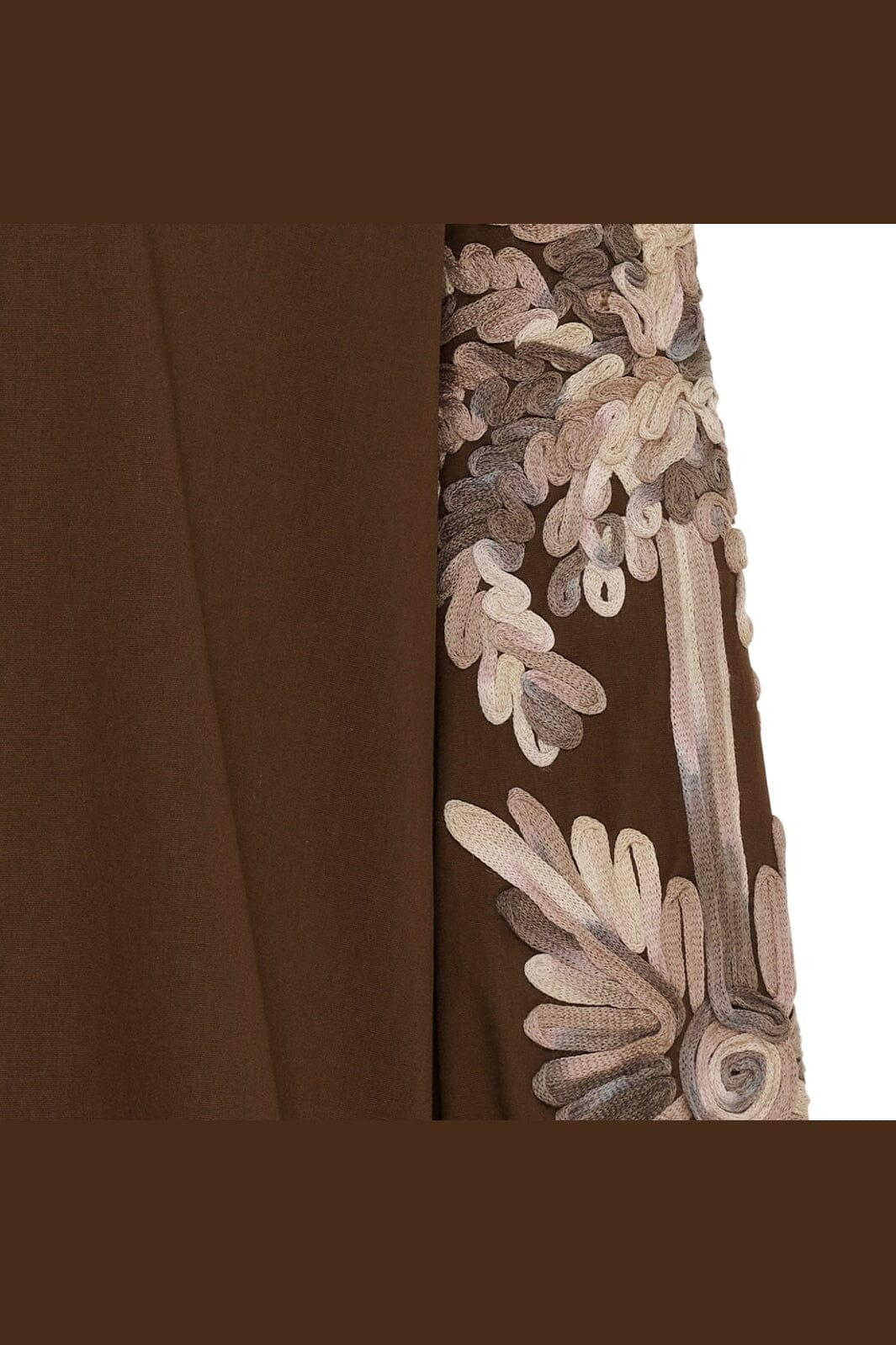 Bruin overhemd van Marta Du Chateau met bloemenborduursels op de mouwen. Het overhemd heeft een klassieke kraag, doorlopende knoopsluiting en is ontworpen met een losse pasvorm en een langer achterpand.