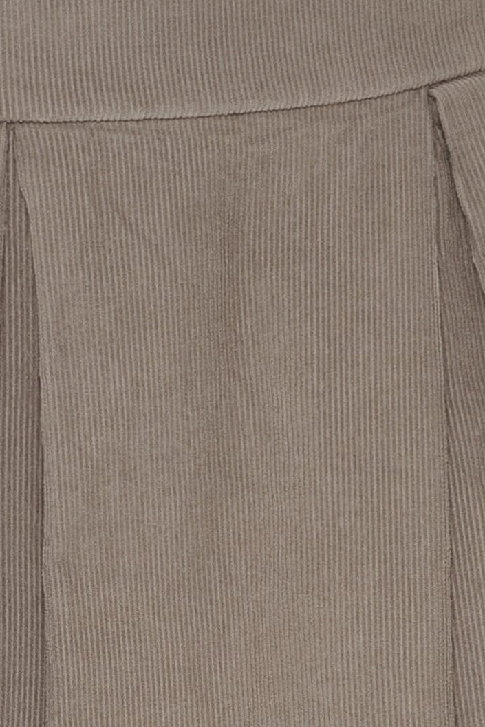 Rok van Marta Du Chateau in een beige-grijze tint. De rok heeft plooien aan de voorkant en een elastische tailleband aan de achterkant.