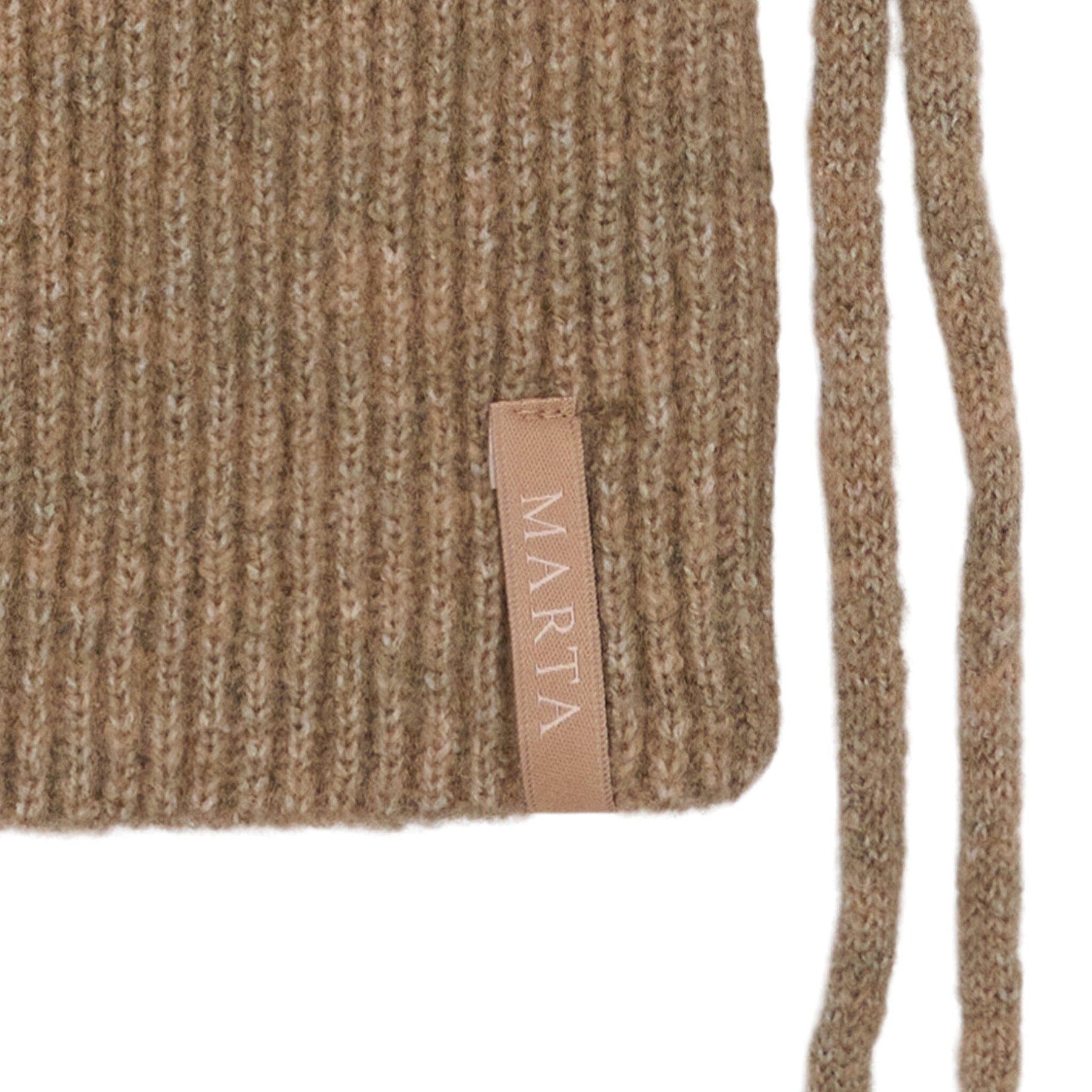 Balaclava van Marta Du Chateau in een aardse fango-tint. Hij heeft een geribbelde textuur en verstelbare koorden aan de voorkant, wat hem praktisch maakt voor buitenactiviteiten.