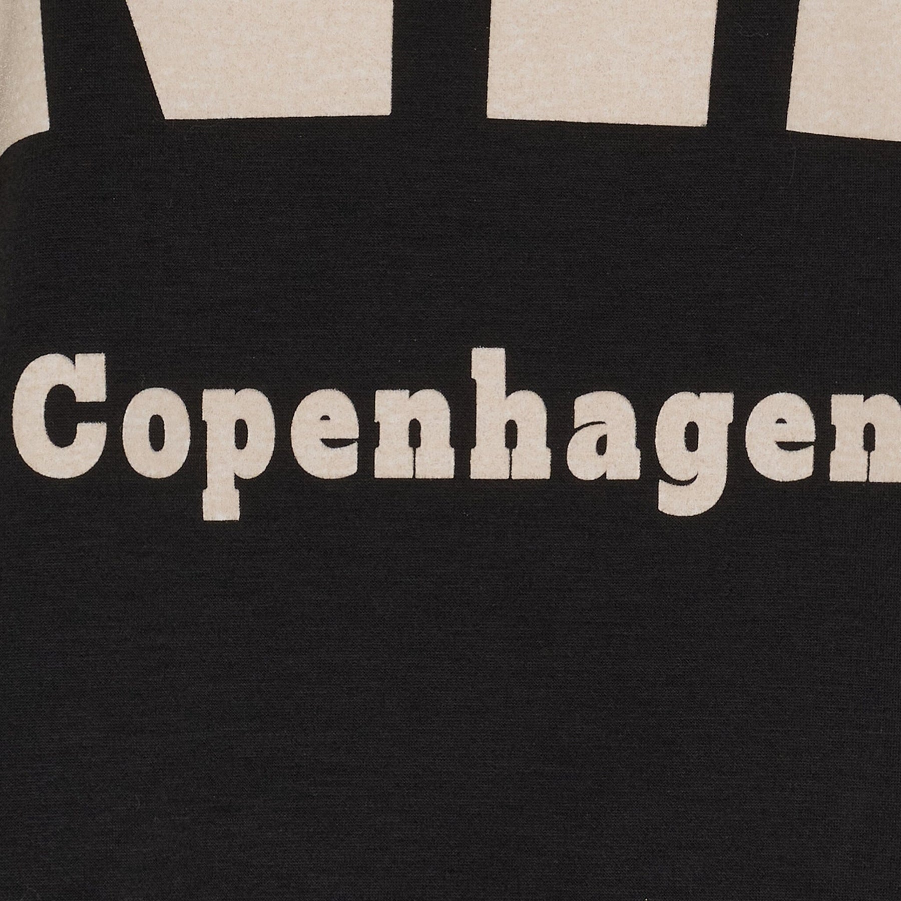 Zwart-wit sweatshirt van Marta Du Chateau met grote witte letters die COPENHAGEN vormen op de voorkant.