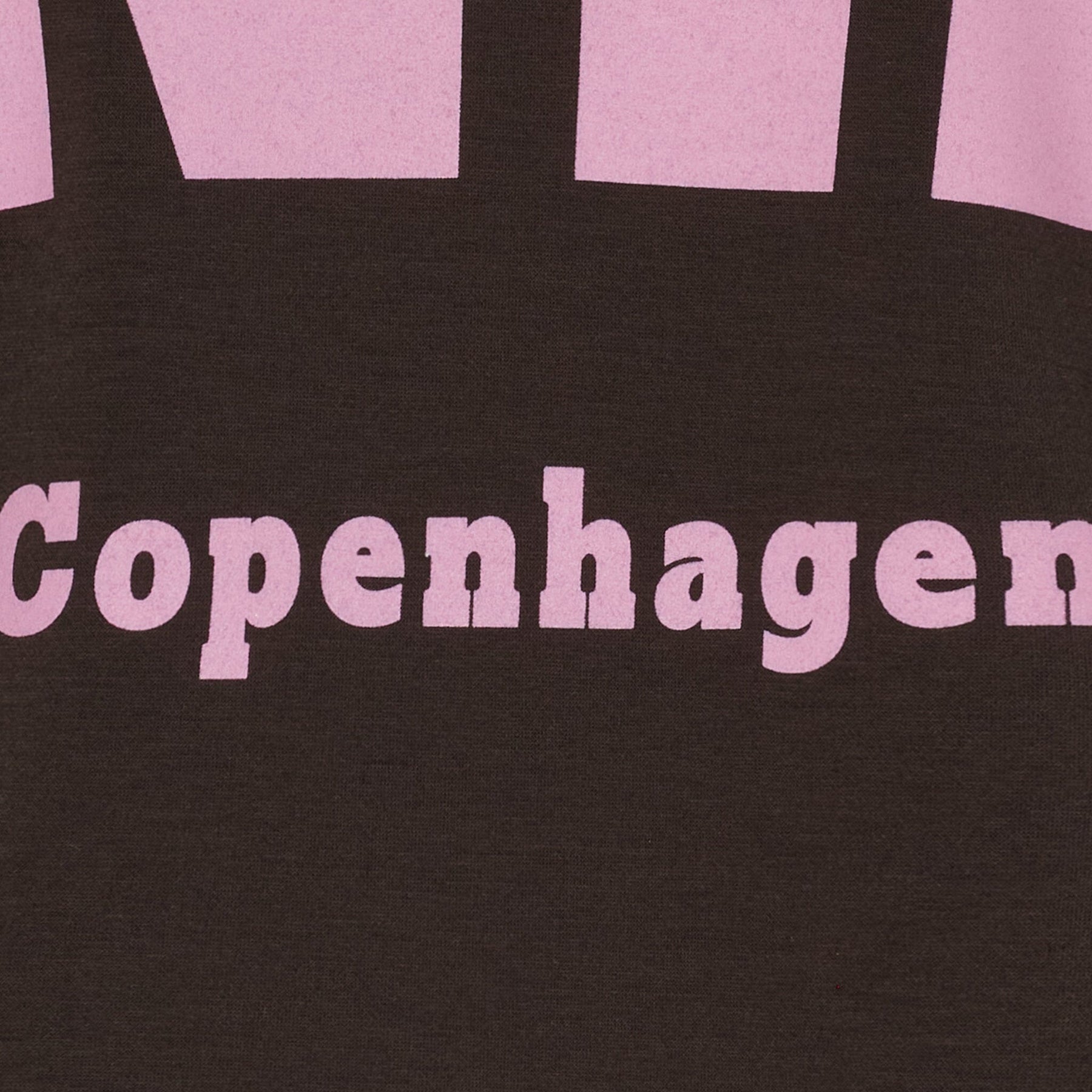 Zwarte sweatshirt van Marta Du Chateau met roze Copenhagen-print. Het heeft grote letters op de mouwen en voorkant in een contrast dat een stedelijke uitstraling geeft.