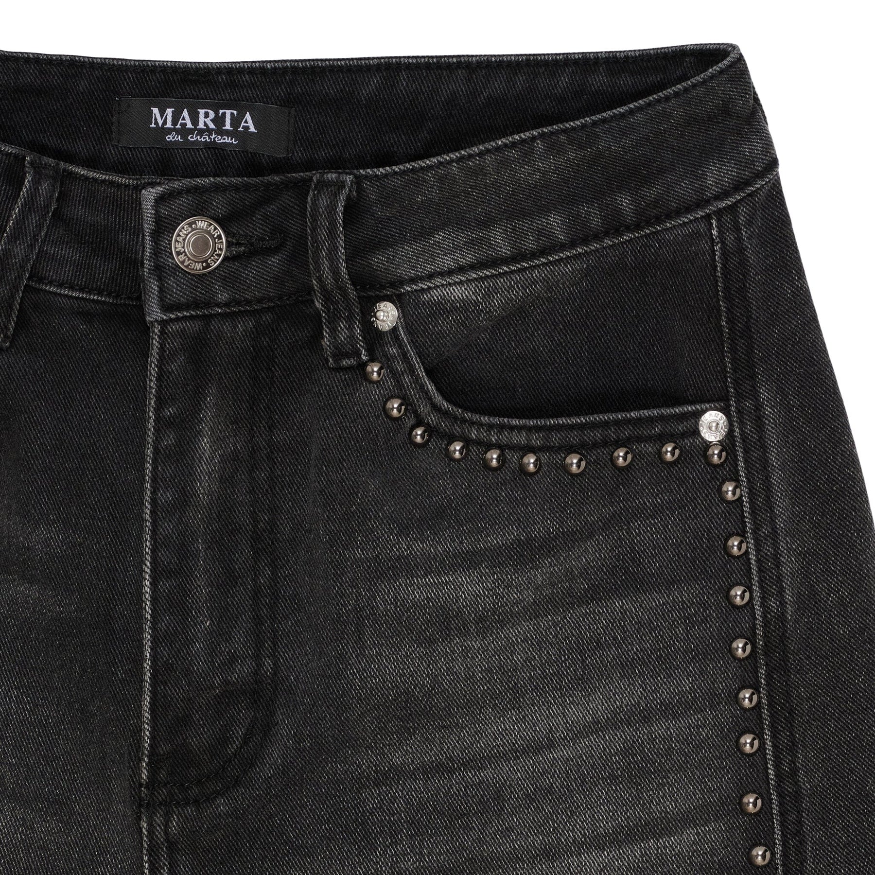 Grijze jeans van Marta Du Chateau met een acid wash-effect en decoratieve studs langs de zijkanten. De broek heeft een hoge taille en een losse pasvorm met kuitlengte.