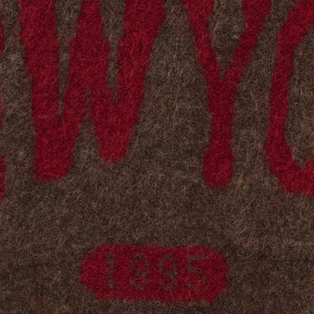 Een trui van Marta Du Chateau in een combinatie van bruin en bordeauxrood. De trui heeft een gemêleerd patroon met een rode print.