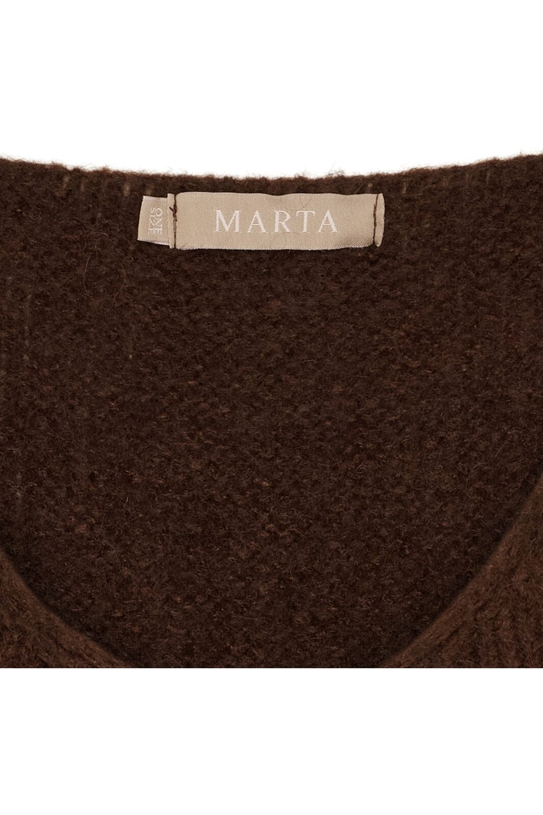 Bruin vest van Marta Du Chateau met V-hals. Het is gebreid in een mix van mohair, wol, polyamide en acryl, wat zorgt voor een warme en duurzame kwaliteit.