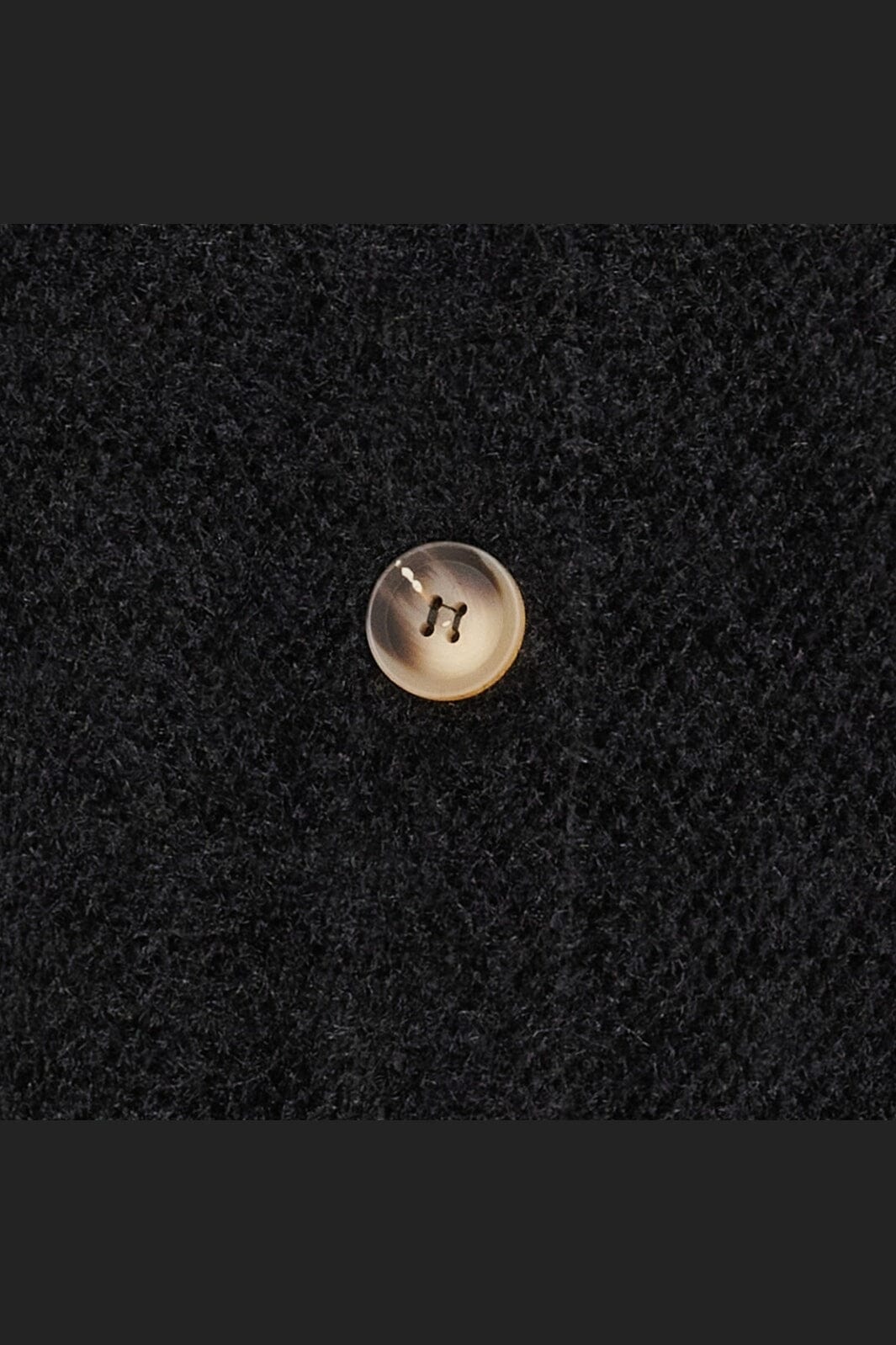 Zwarte jas van Marta Du Chateau met een losse pasvorm en driekwartlange mouwen. De jas heeft een hoge halsuitsnijding en grote, ronde knopen aan de voorkant.