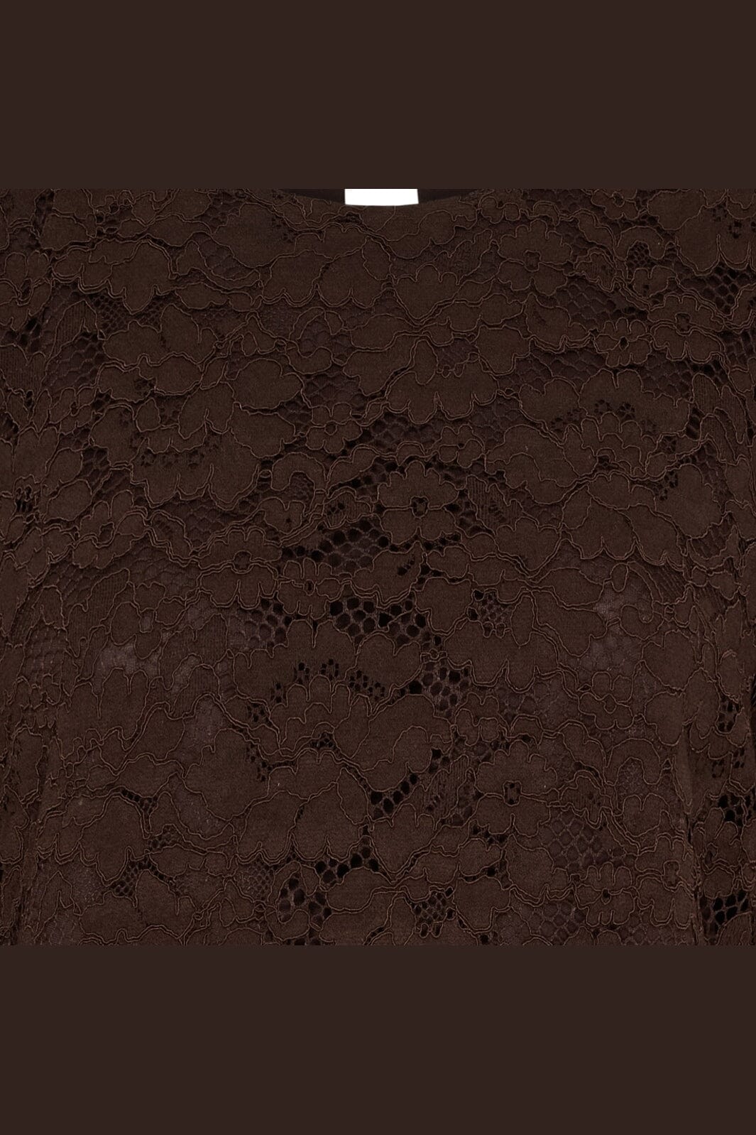 Bruine kanten jurk van Marta Du Chateau met een bloemenpatroon. De jurk heeft korte mouwen, een ronde hals en komt tot op het dijbeen. Een knoopsluiting aan de achterkant maakt het makkelijk om aan en uit te trekken.