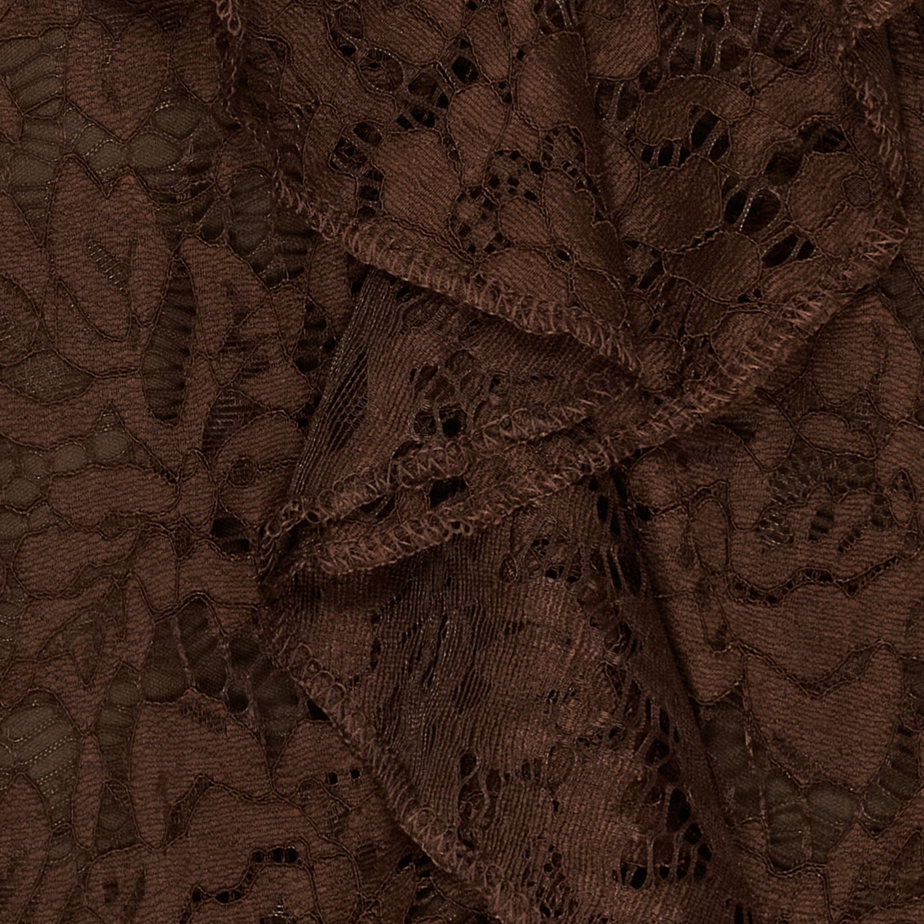 Bruine kanten blouse van Marta Du Chateau met bloemenpatroon en ruchesdetails. De blouse is geschikt voor zowel formele als informele gelegenheden en feestelijke momenten.
