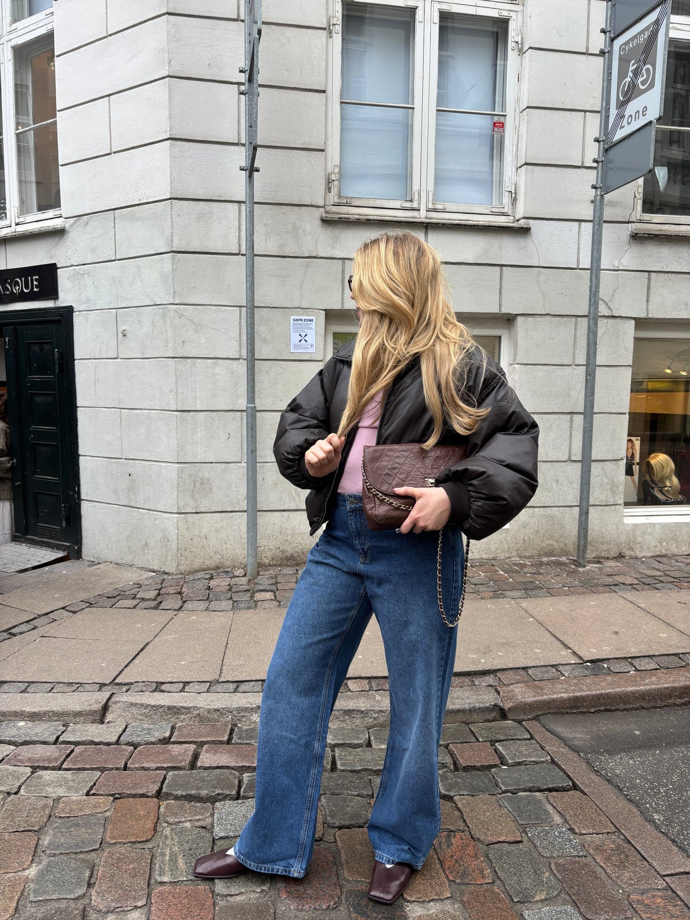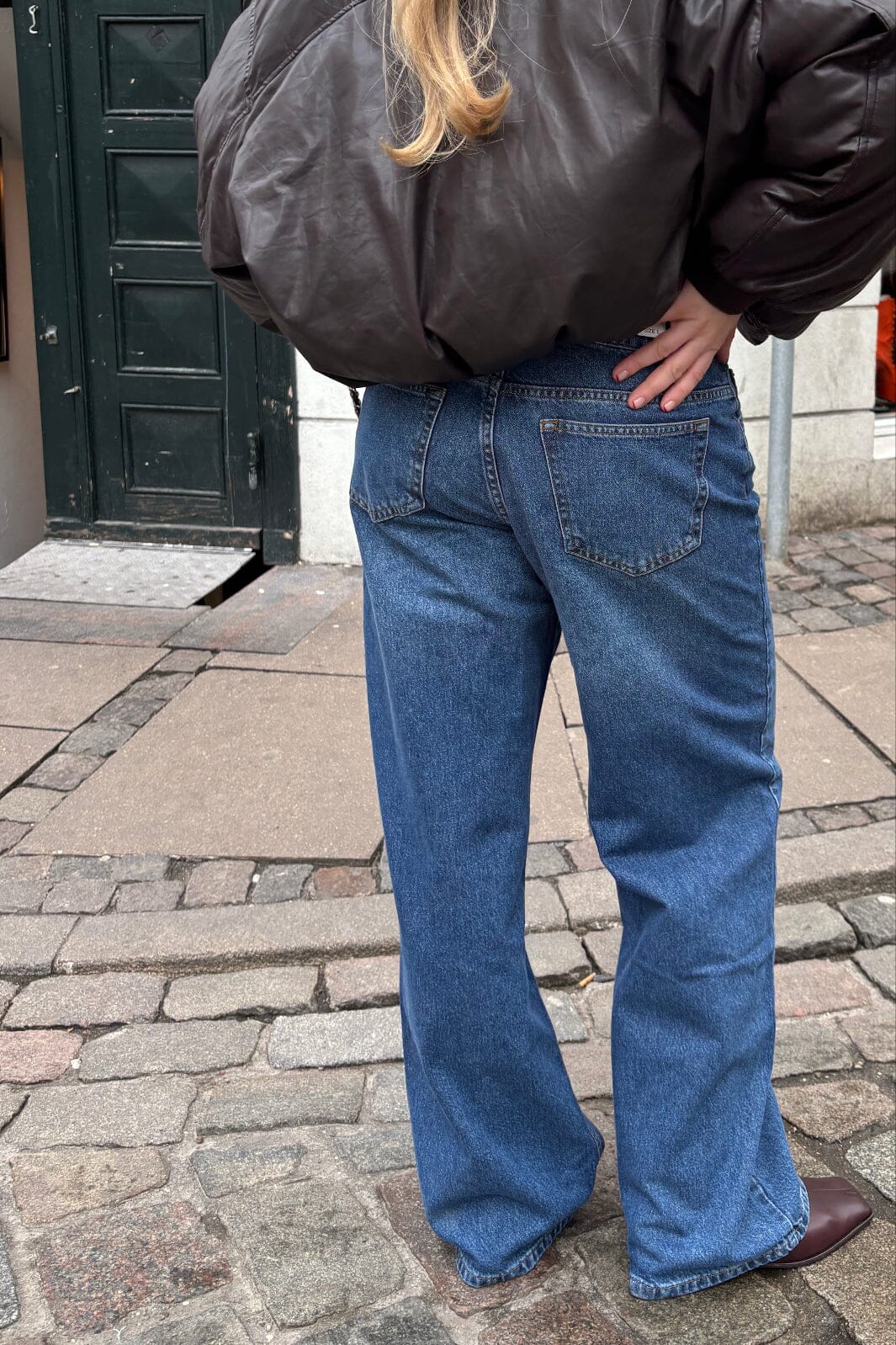 Jeans van MbyM in een vintageblauwe wassing. De jeans heeft een hoge taille en een losse pasvorm.