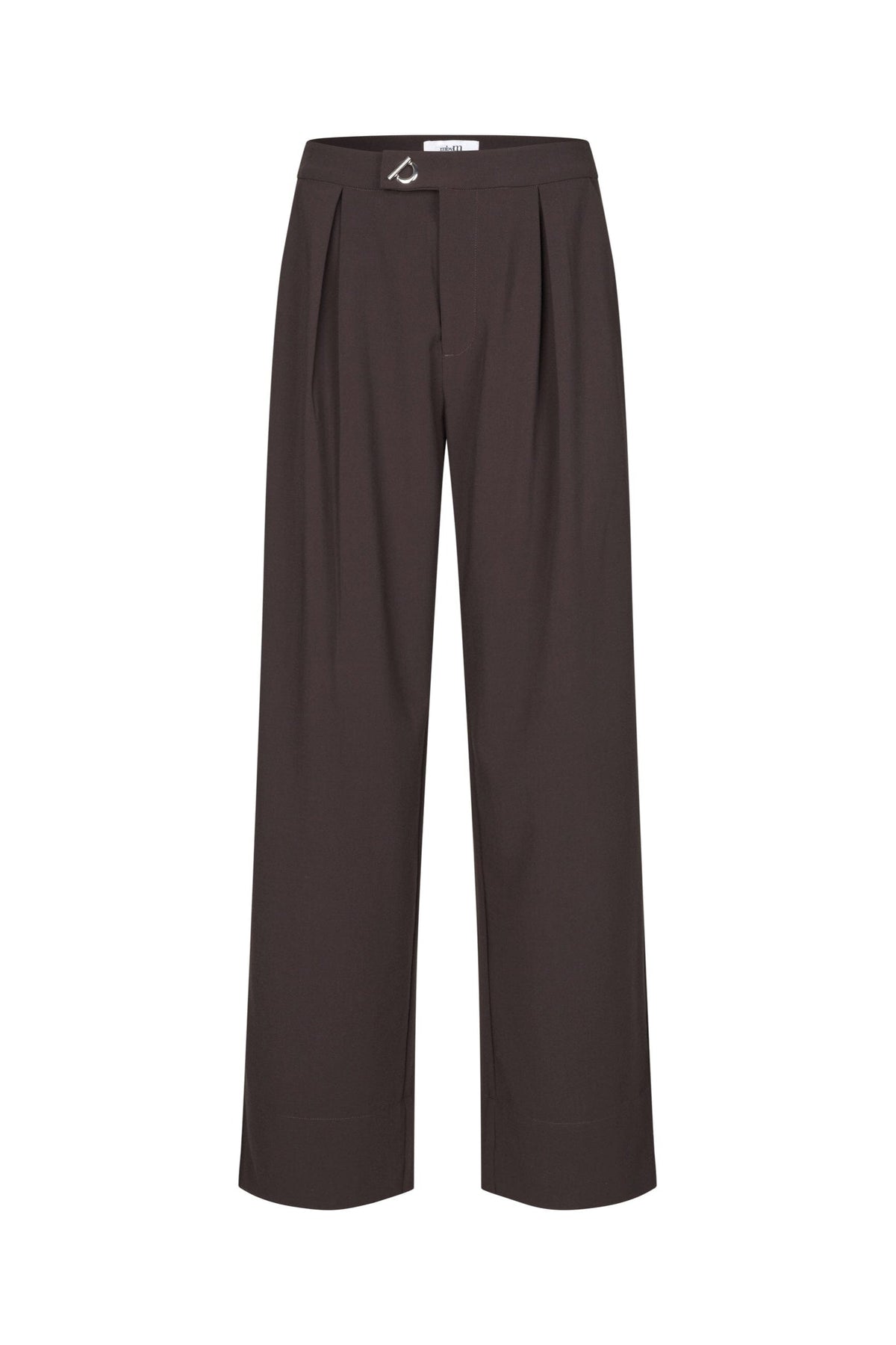 Bruine broeken van MbyM met brede pijpen. De broeken hebben een hoge taille en zijn vloerlang, en ze passen zowel bij casual als formele gelegenheden.