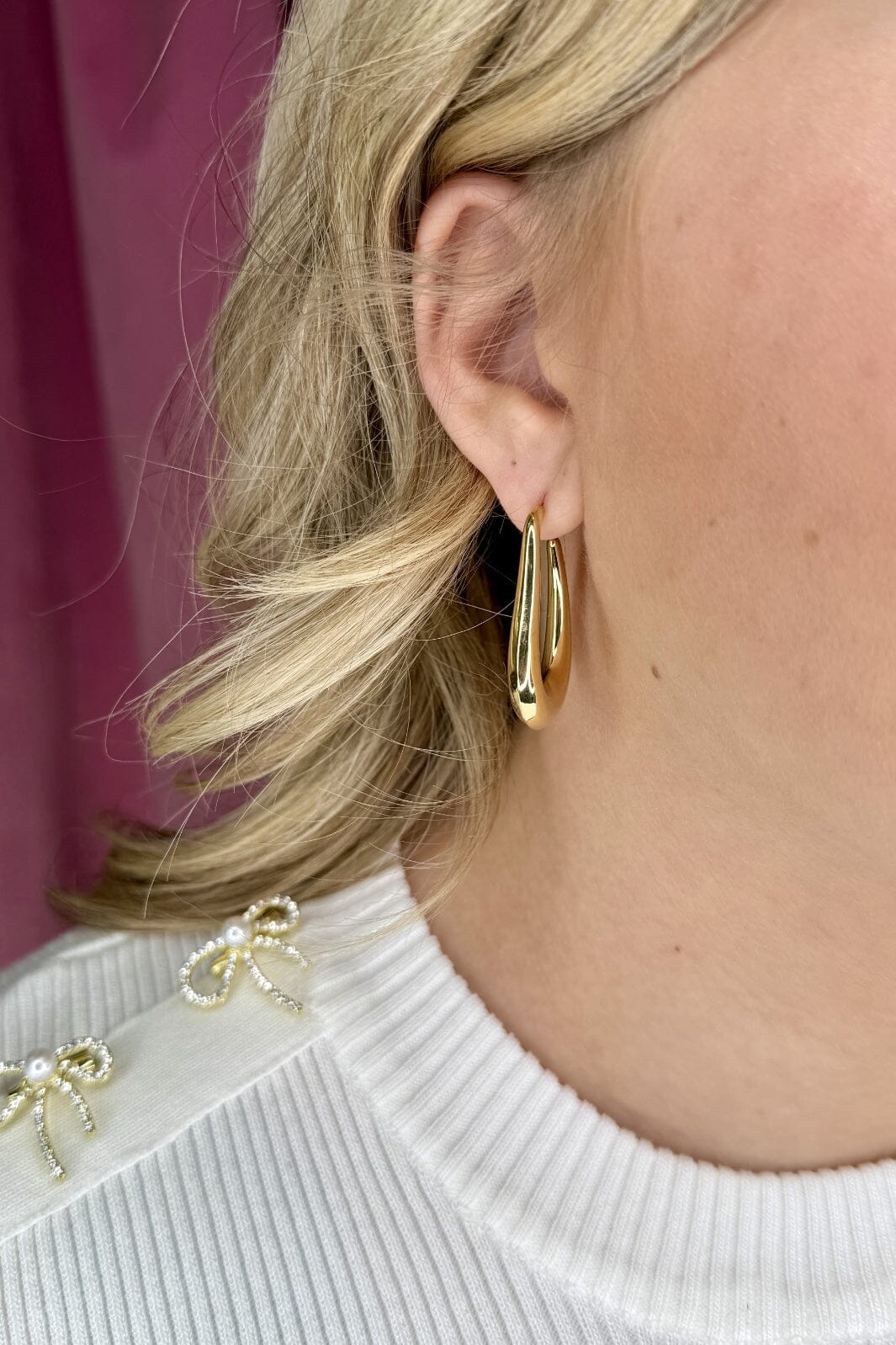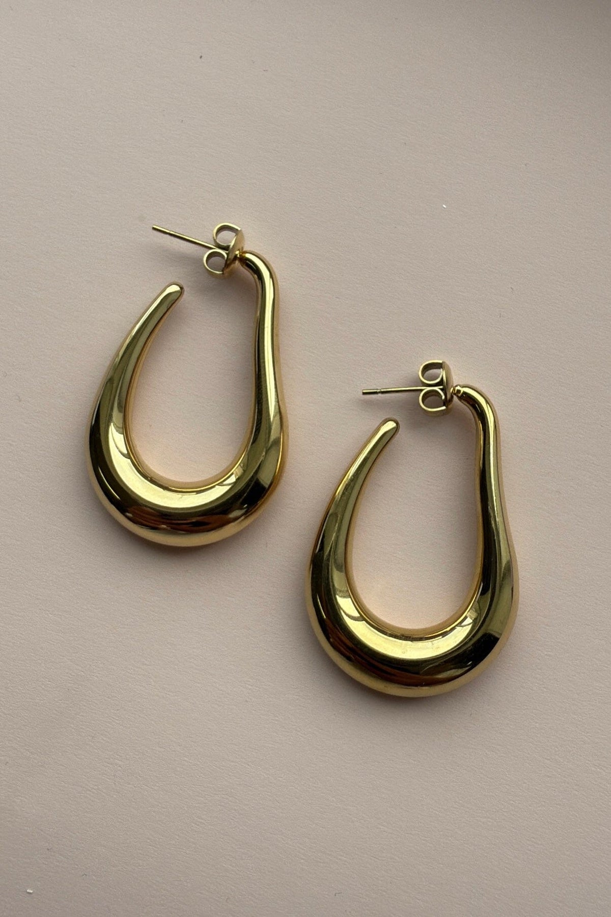 Gouden oorbellen van Mellow Moon met een gebogen vorm en een glad oppervlak. De oorbellen hebben een gepolijste afwerking die een glanzende uitstraling geeft.